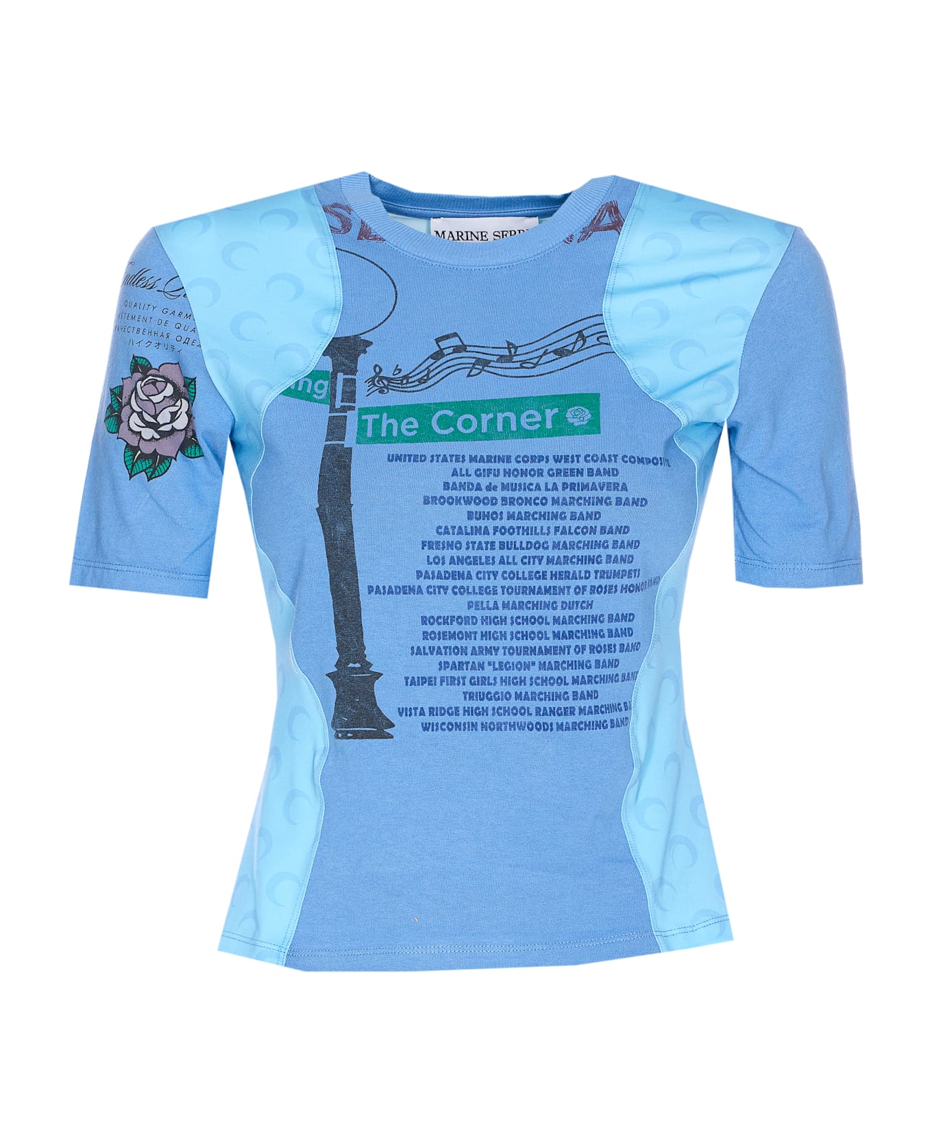 Marine Serre blue regenerated graphic t-shirt, crewneck, printed, Moon print logo Composition: 100% Cotton