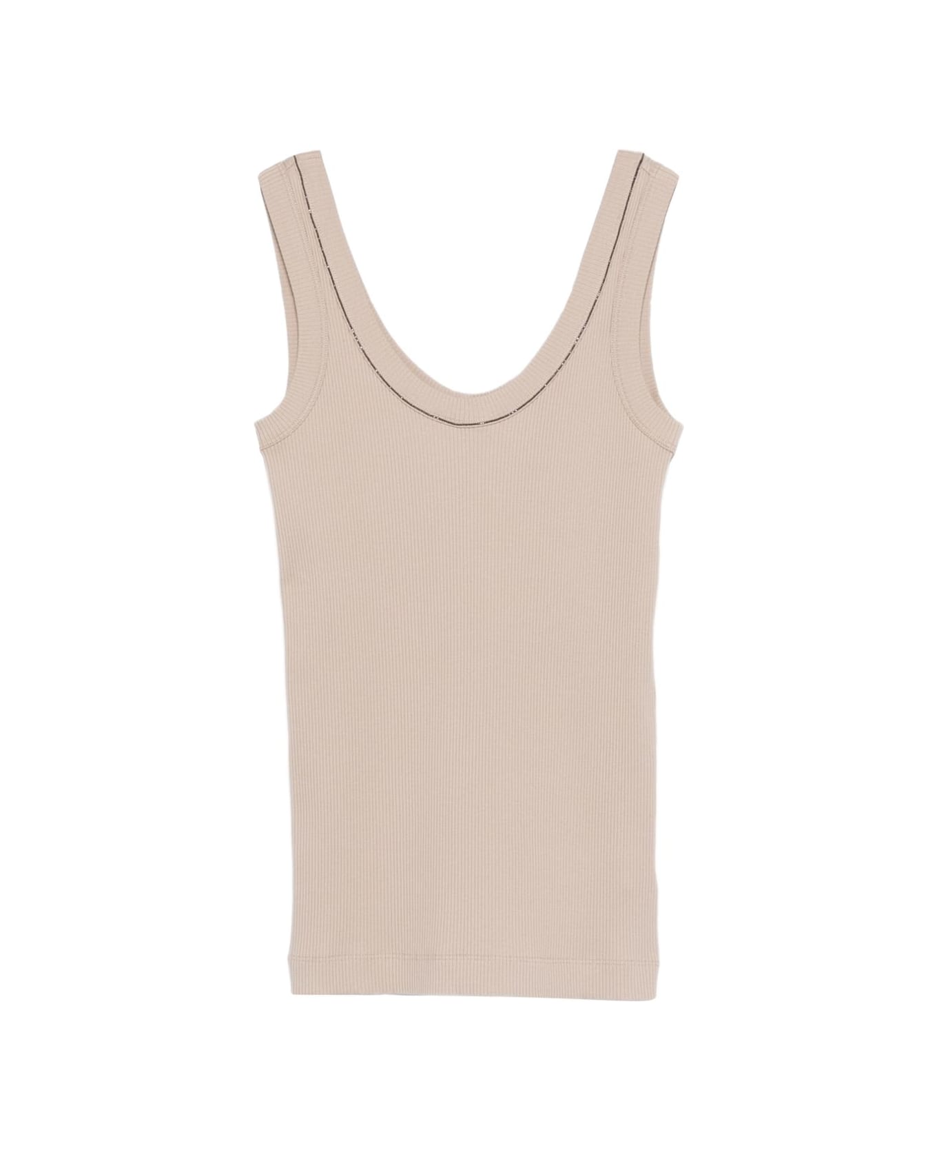 brown ribbed knit scoop neck trim detail sleeveless cotton Composition: 95% Cotton, 5% Elastane