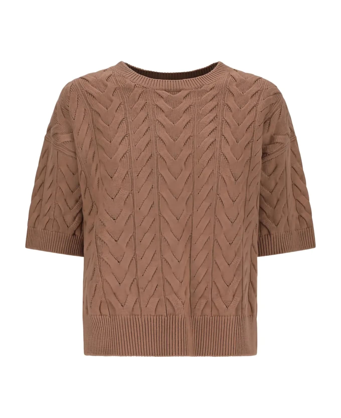 Brown Dominus sweater by MAX MARA in wool, featuring cable knit, a round neckline and short sleeves with dropped shoulders. Composition: 100% Wool Ovis