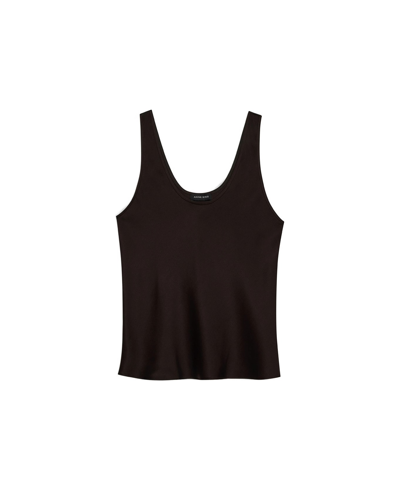 deep brown silk scoop neck sleeveless tonal stitching