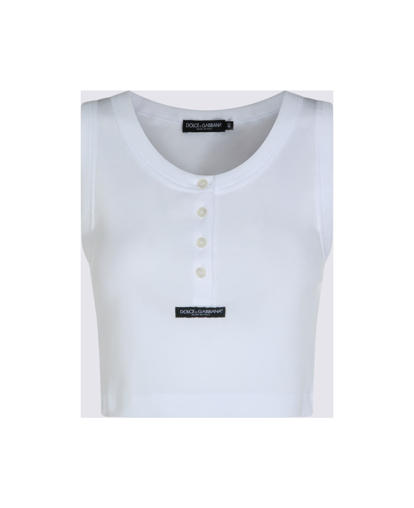 White cotton top from Dolce&Gabbana featuring round collar, buttons, logo patch and sleeveless. Composition: 100% Cotton