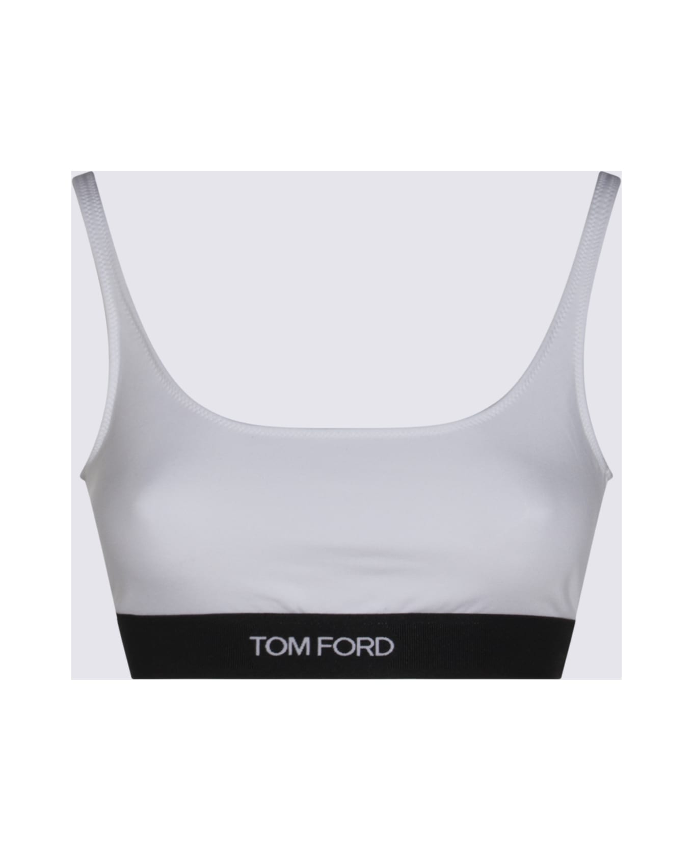 White modal top from Tom Ford featuring wide neckline, shoulder straps and elastic waistband with logo. Composition: 97% Modal, 3% Elastane
