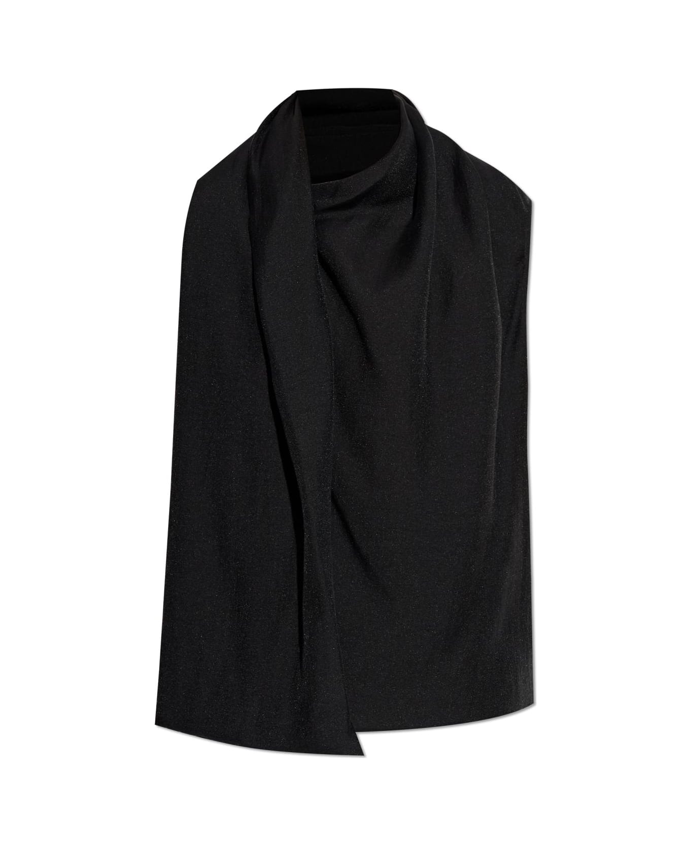 Experience understated refinement with the Decorative Scarf Top by TOTEME, an emblem of modern minimalism. Artfully crafted from a delicate blend of lyocell, polyester, and linen, this sleeveless top reveals a subtly flared silhouette that gracefully skims the body. Wide shoulders accentuate its clean, architectural lines, while the smooth, matte texture underscores the fabric's superior quality. The pièce de résistance is the integral scarf, effortlessly draping across the front an elevated detail allowing endless styling versatility around the neck or shoulders. Immaculate construction is evident in the lack of visible seams, enhancing the top's polished, unembellished finish. The back remains flawlessly simple, gently shaped for a sophisticated profile. Why choose this product? Distinctive, minimalist silhouette by renowned label TOTEME Premium tactile blend for comfort and subtle sheen Versatile built-in scarf for personalized styling Expert craftsmanship with seamless design elements Perfect balance of contemporary elegance and versatility