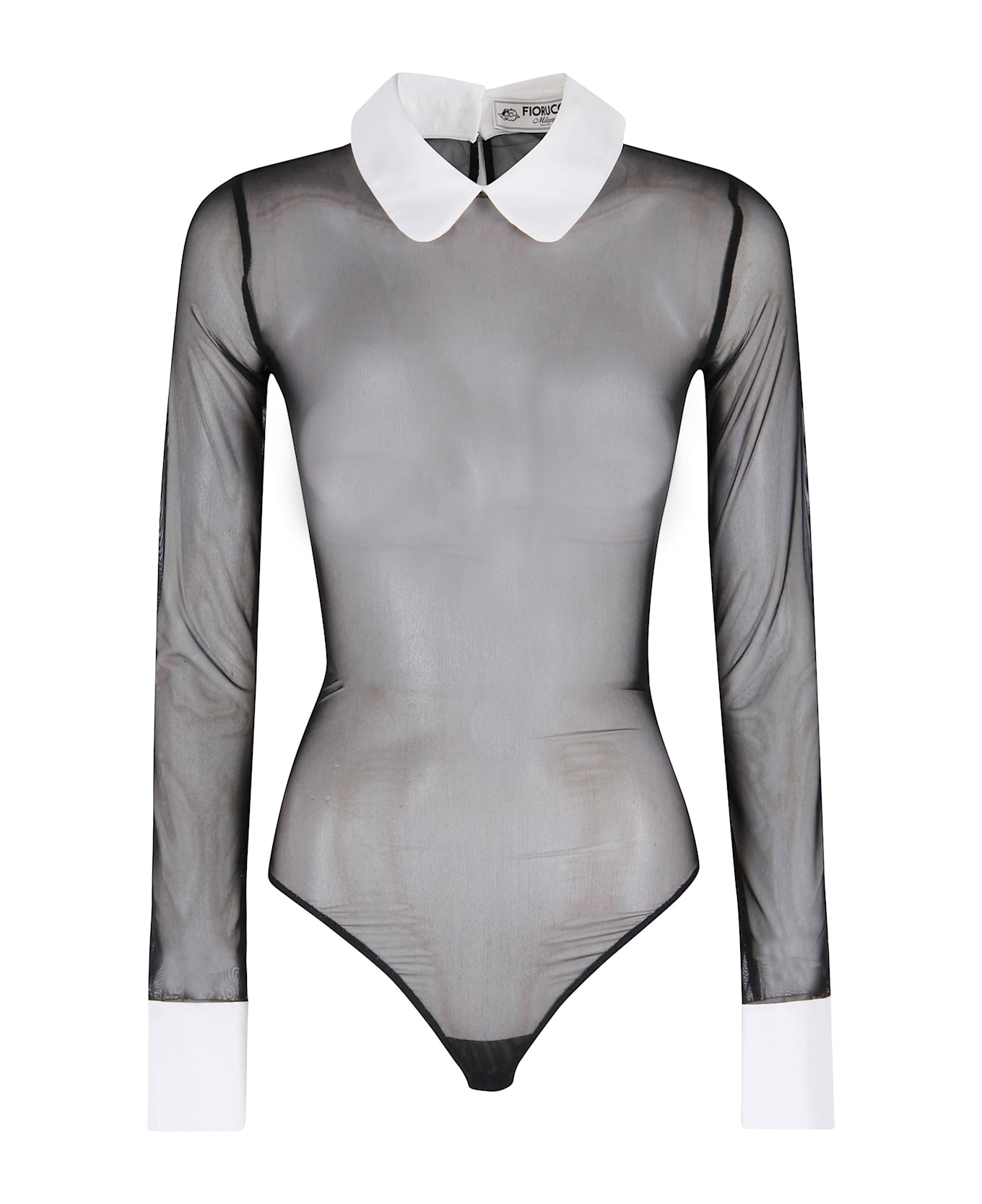 Bodysuit - Fiorucci - Black color - Tulle fabric - Contrasting collar - Long sleeve with contrasting cuff - Tight fit