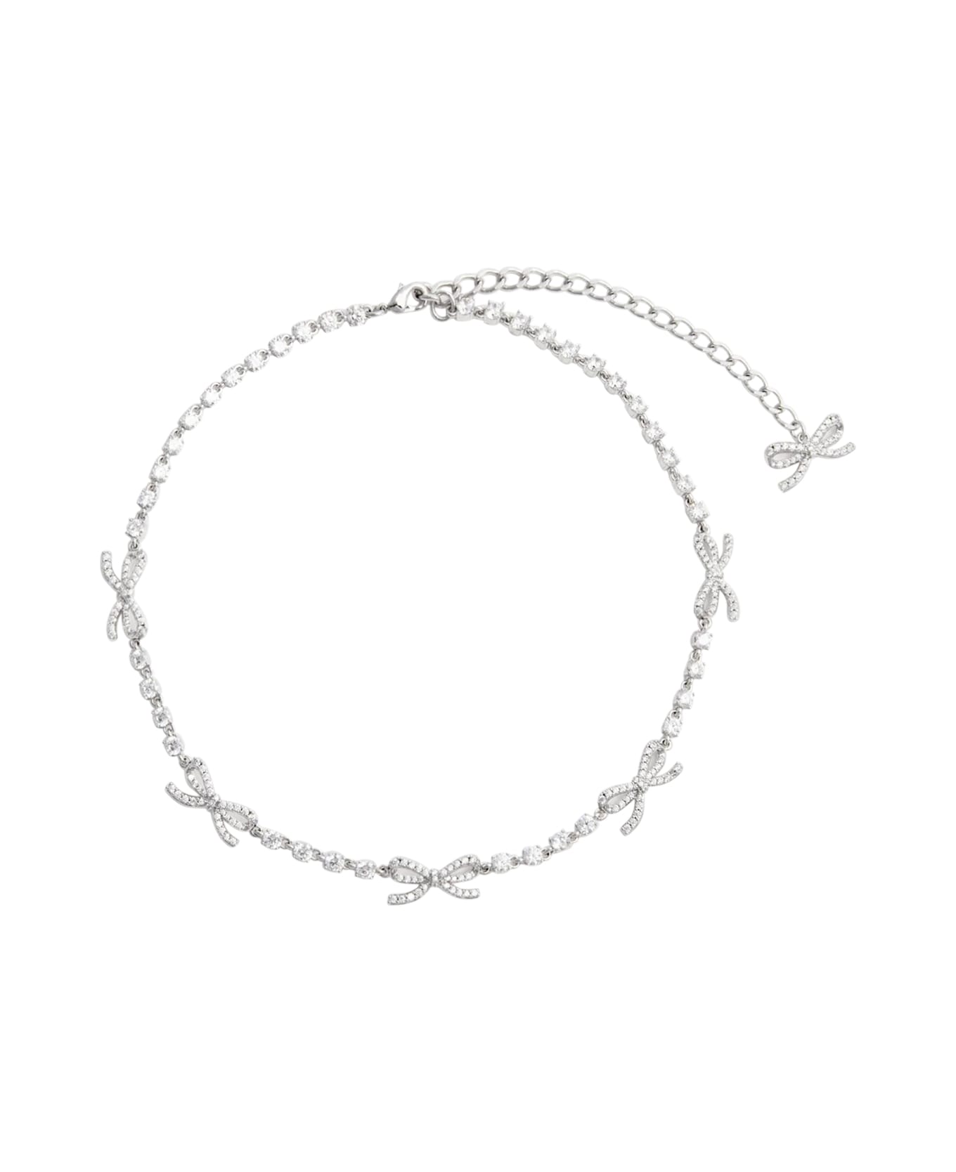 Self Portrait silver micro crystal bow necklace, hook closure