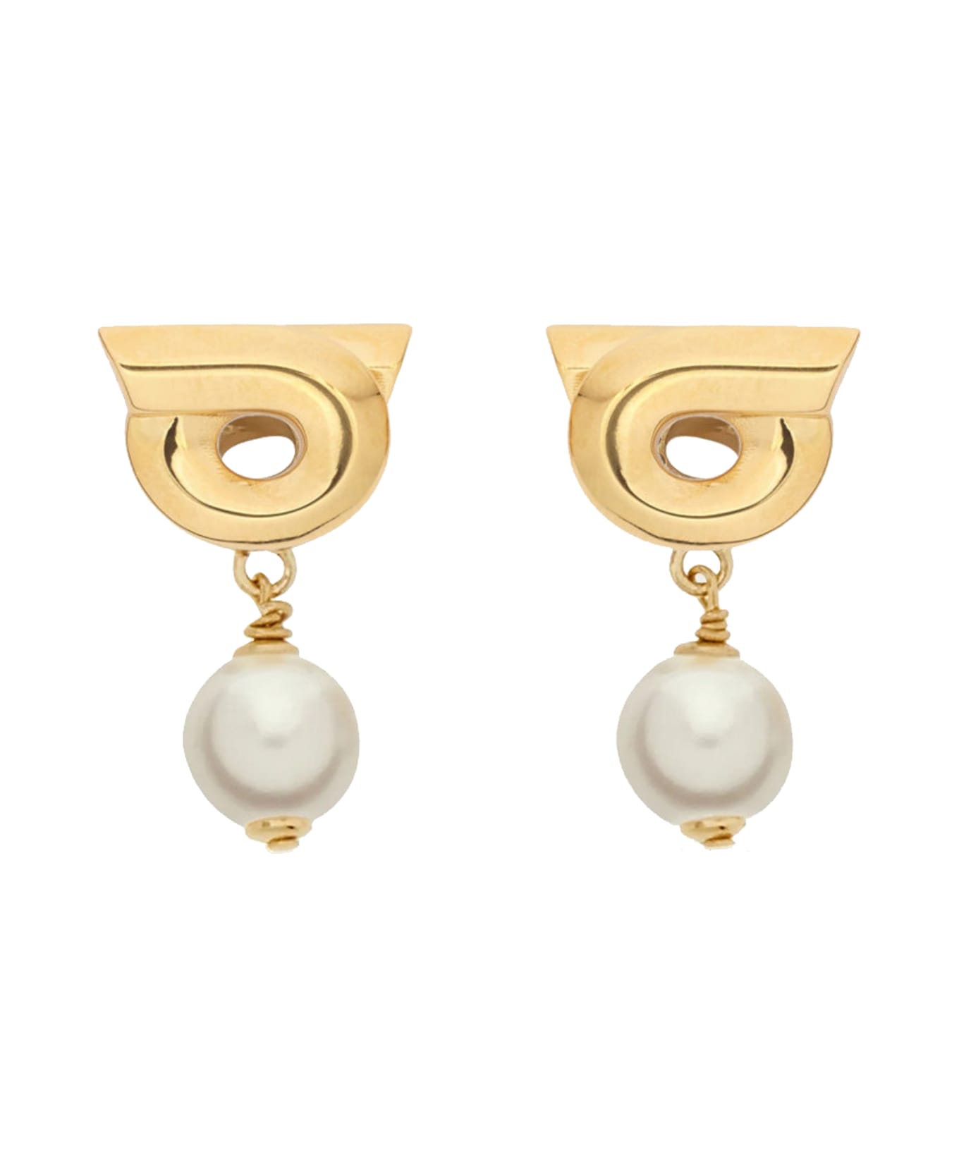 Ferragamo gold Gancini Pearl earrings, pearl charm Composition: 70% Brass, 30% Glass