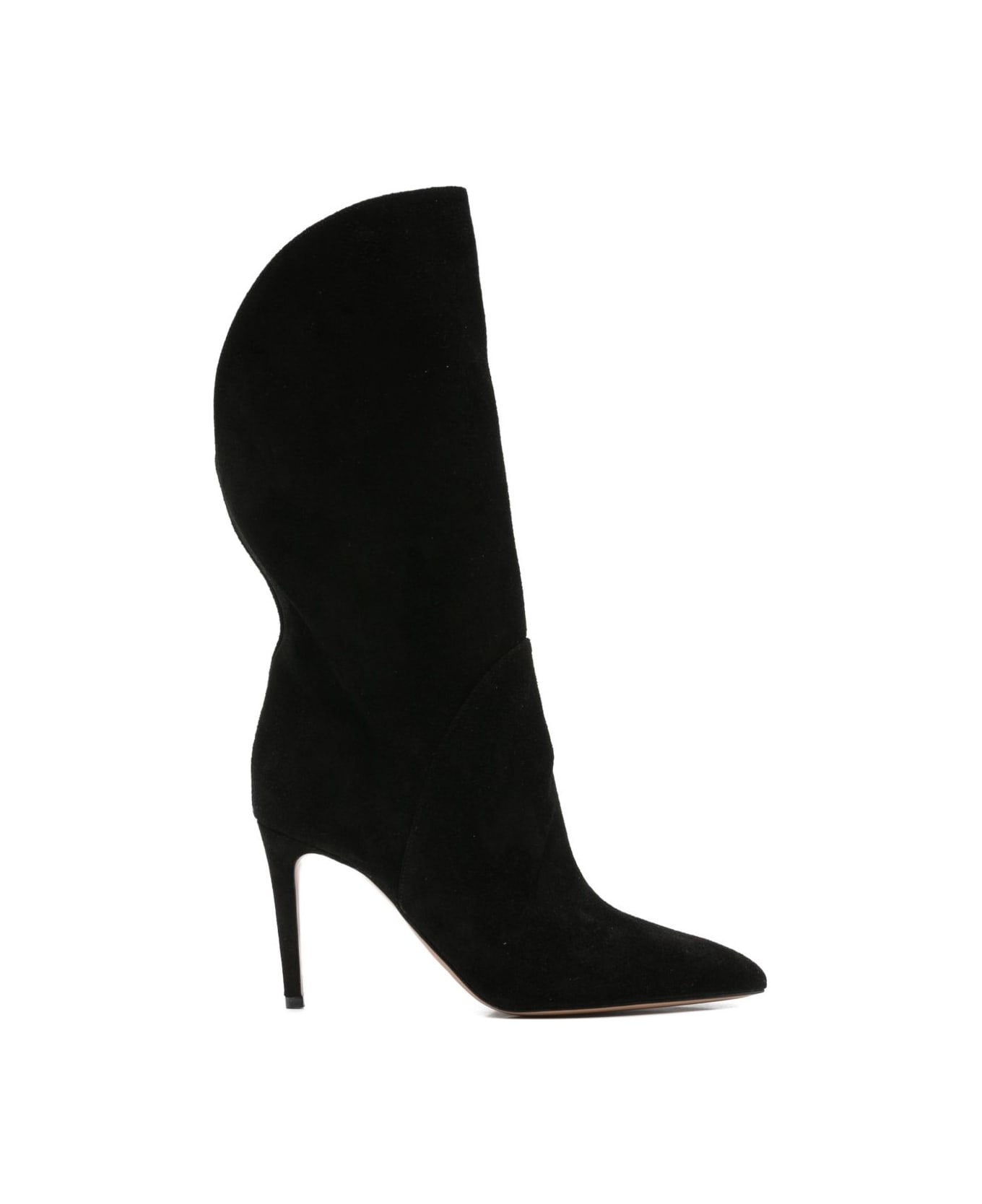 Paris Texas Black suede heeled boots, calf-high coverage, modern shape. Composition: Upper, 100% Calf Bos Taurus Lining, 100% Goat Hircus Aegagrus Sole, 100% Calf