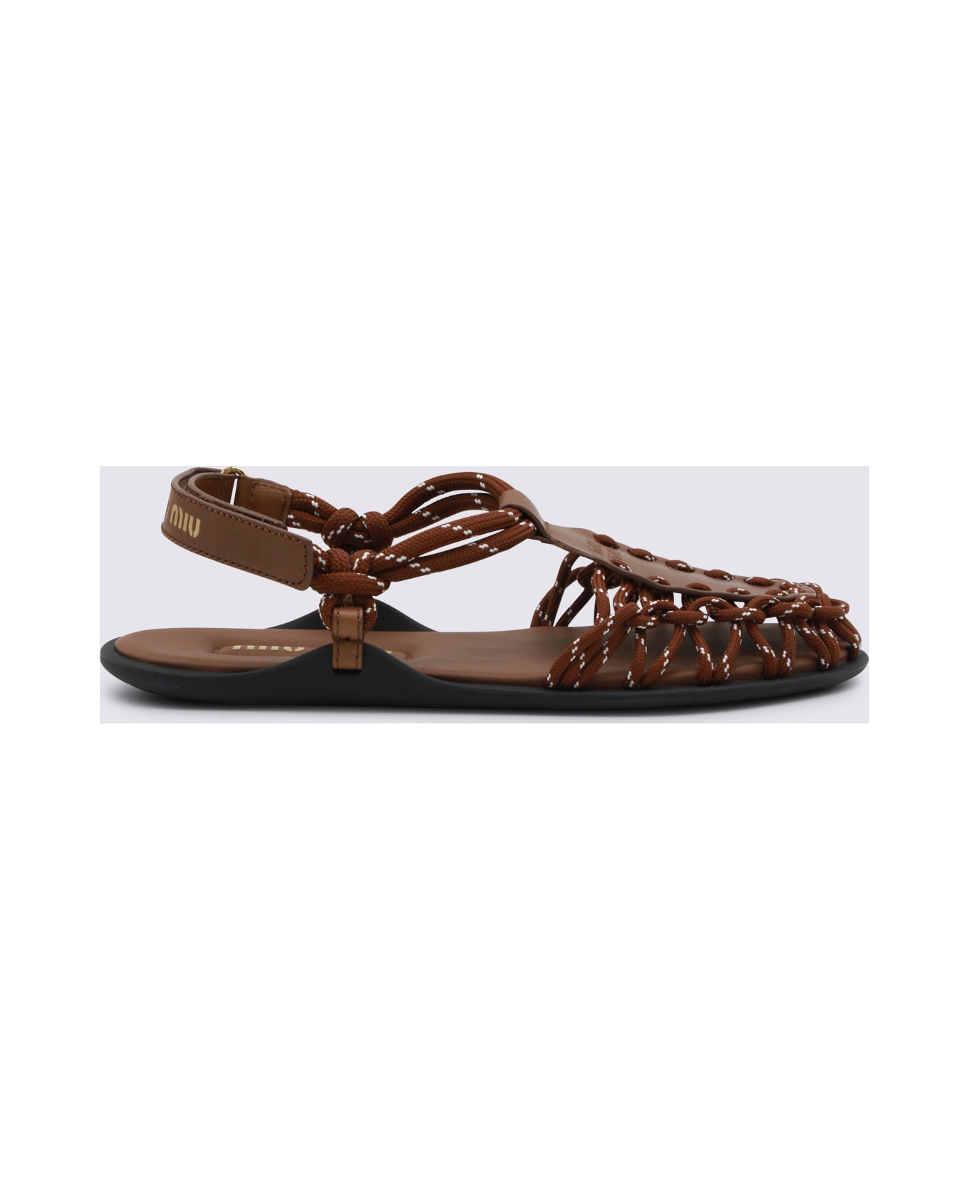 Dark brown tobacco leather flats from Miu Miu featuring crochet texture, flat line, branded sole and logo inserts. Composition: _cover, 100% Le Sole, 100% Elastodiene