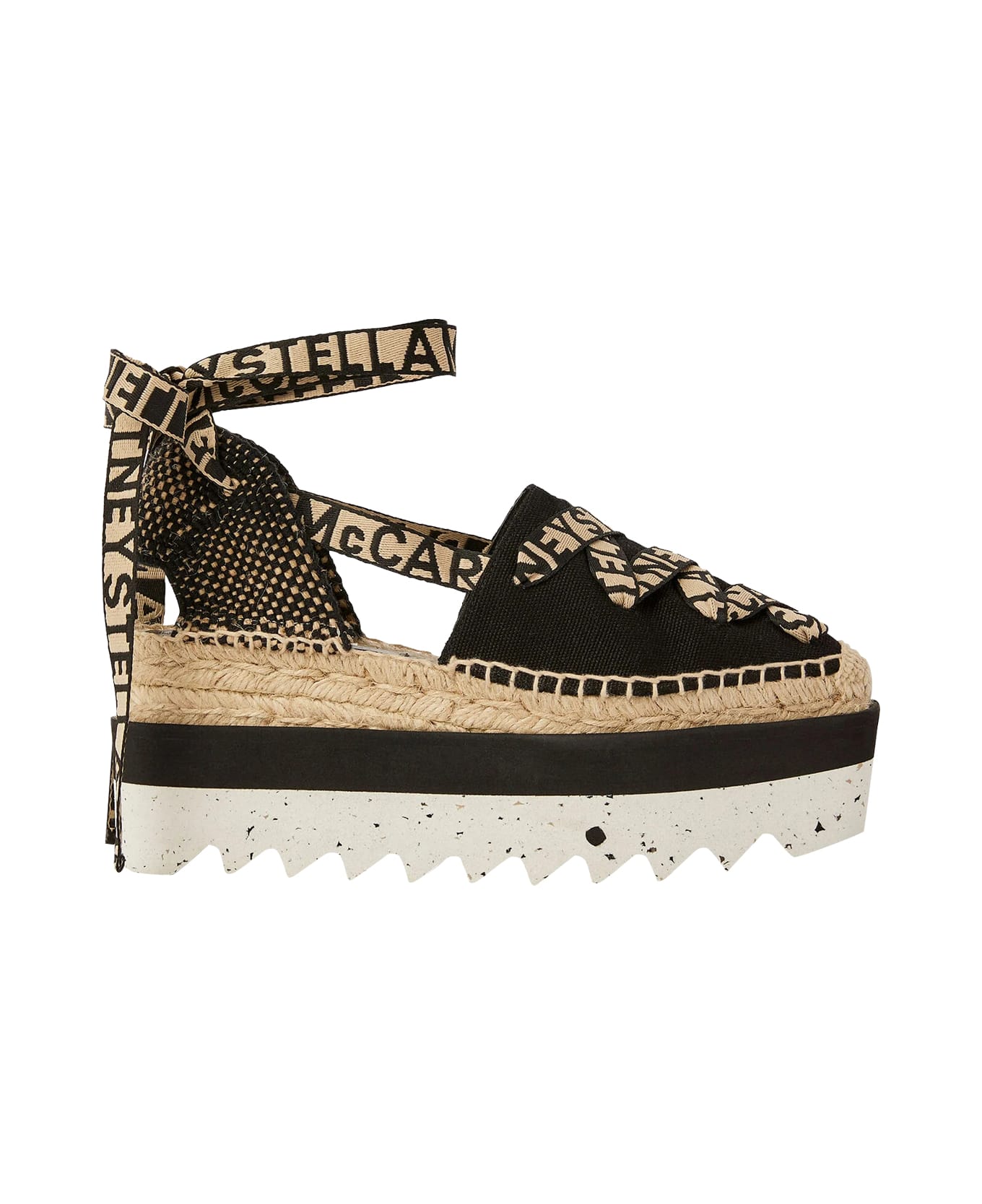 Stella Mccartney black Gaia espadrilles, platform model, string logo details, fabric upper Composition: 100% Fabric/rubber Sole