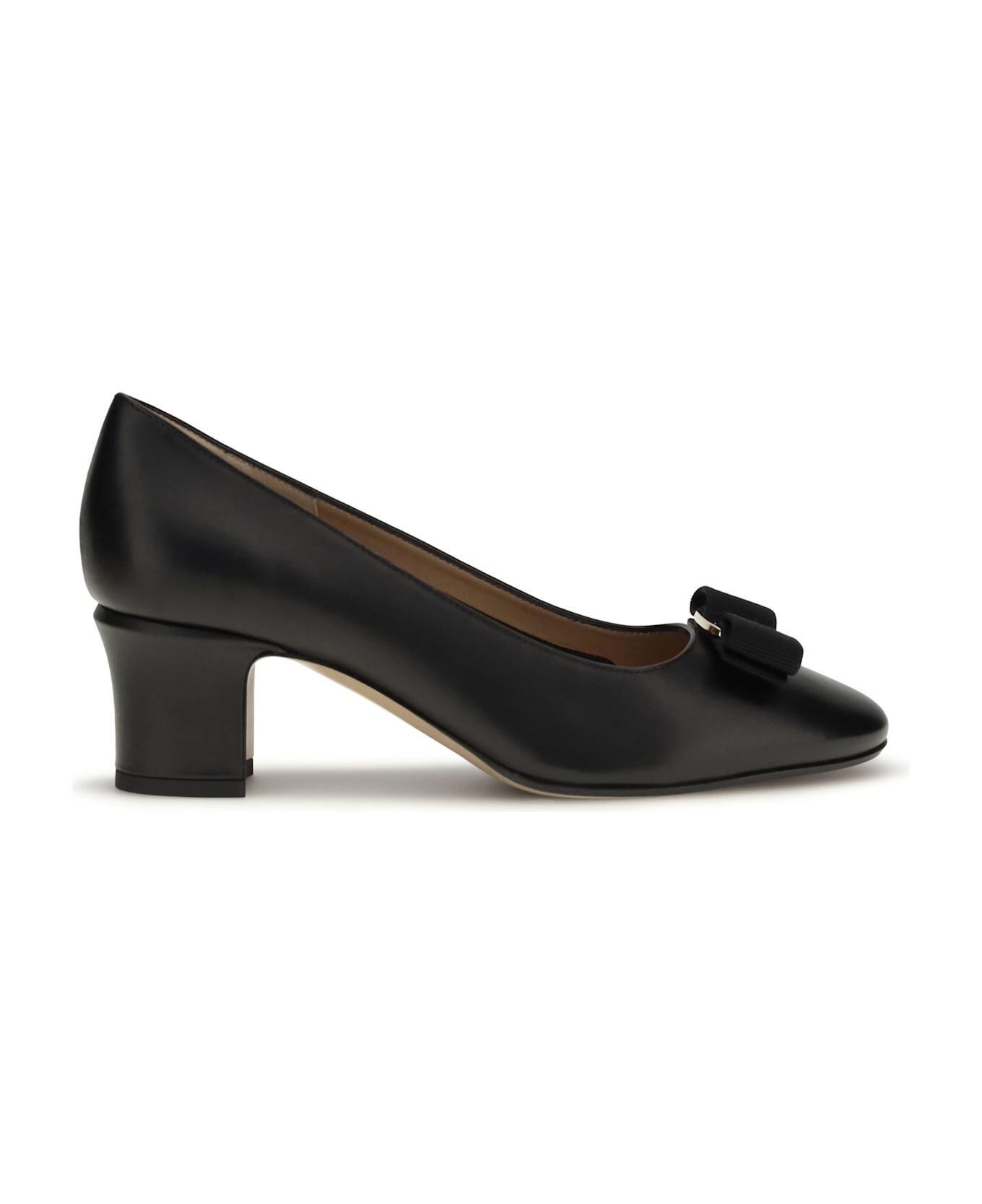 The fiocco vera pumps by ferragamo are a fresh reinterpretation of the brand's iconic model. with a shiny naplak upper, these shoes retain the famous vara bow on the toe, a symbol of timeless elegance. the lighter, slimmer heel adds a modern touch to the design, while the slightly squared toe adds a sophisticated, contemporary accent. a perfect balance between tradition and innovation, ideal for those seeking refinement and comfort with every step.