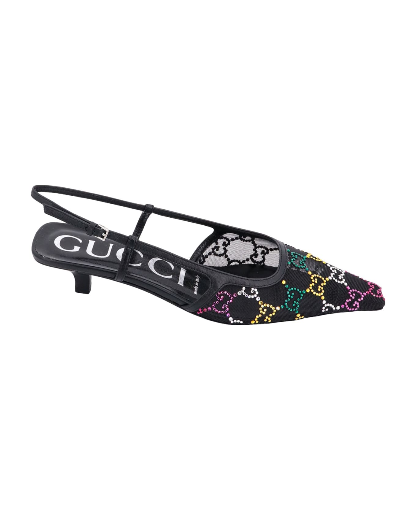 Mesh slingback with rhinestones