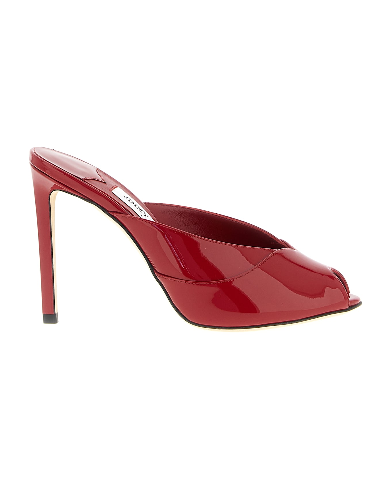 'Brigitte' ultra-glossy patent leather sabots, heart-shaped neckline with front opening, stiletto heel, leather sole. Composition: 87% lh 5% sa 5% pt 3% me