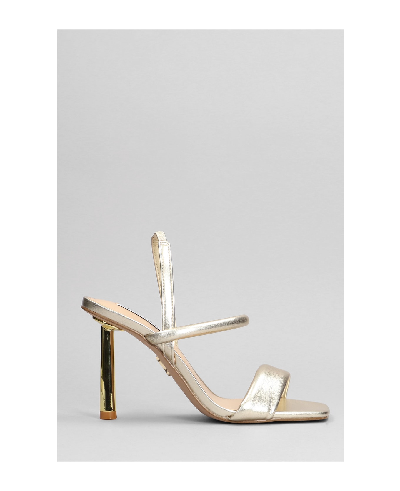 Exquisite Sandals in gold leather, two straps, double ankle straps, 100 mm heel, 100% leather, square open toe, Made in China