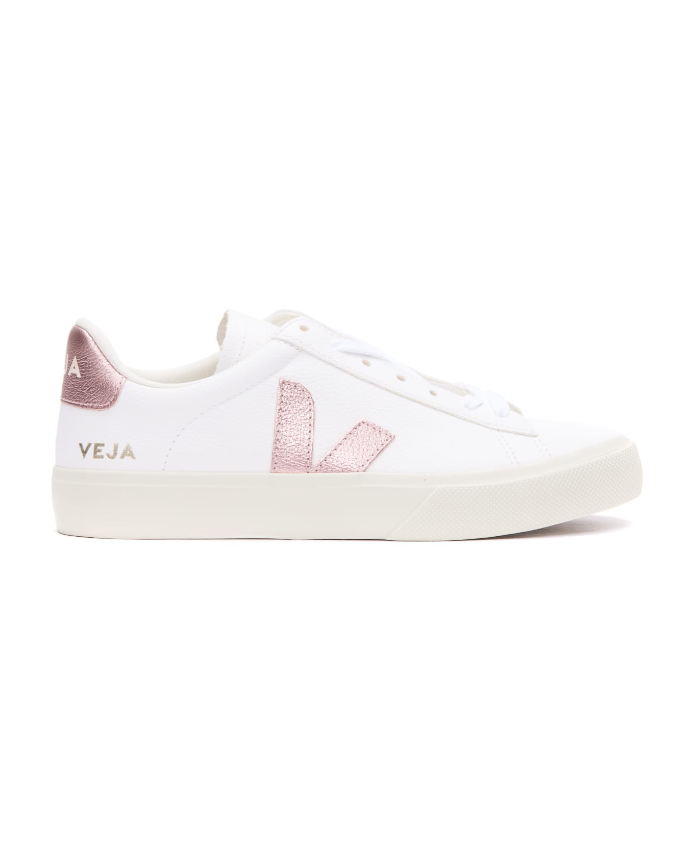 Veja white Campo Chromefree sneakers, leather upper, lateral logo, laces closure, round toe Composition: 50% Leather, 50% Fabrc / Rubber Sole