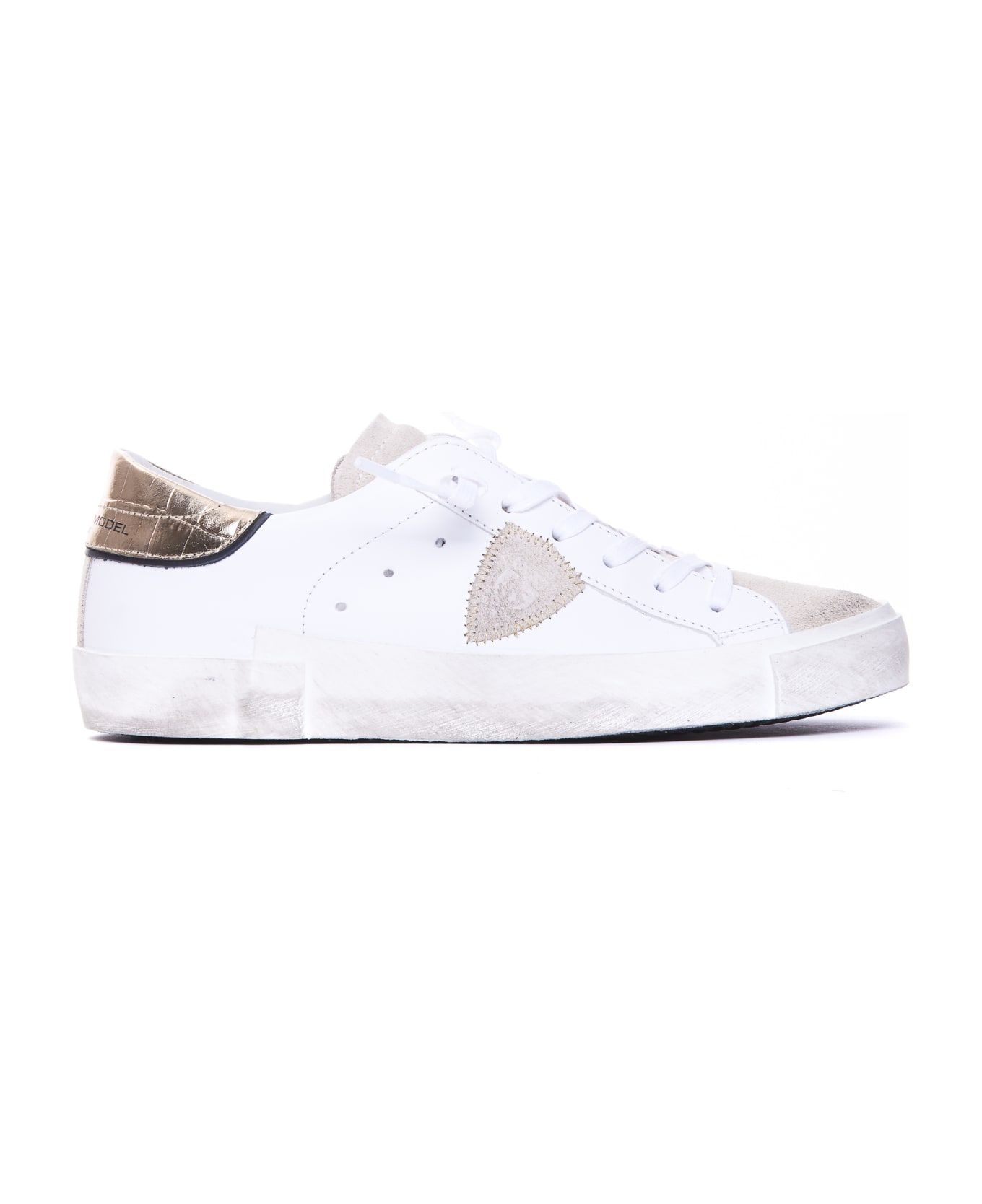 Philippe Model white Prsx sneakers, leather and suede upper, laces closure, round toe, lateral patch logo Composition: 100% Calf Leather/rubber Sole