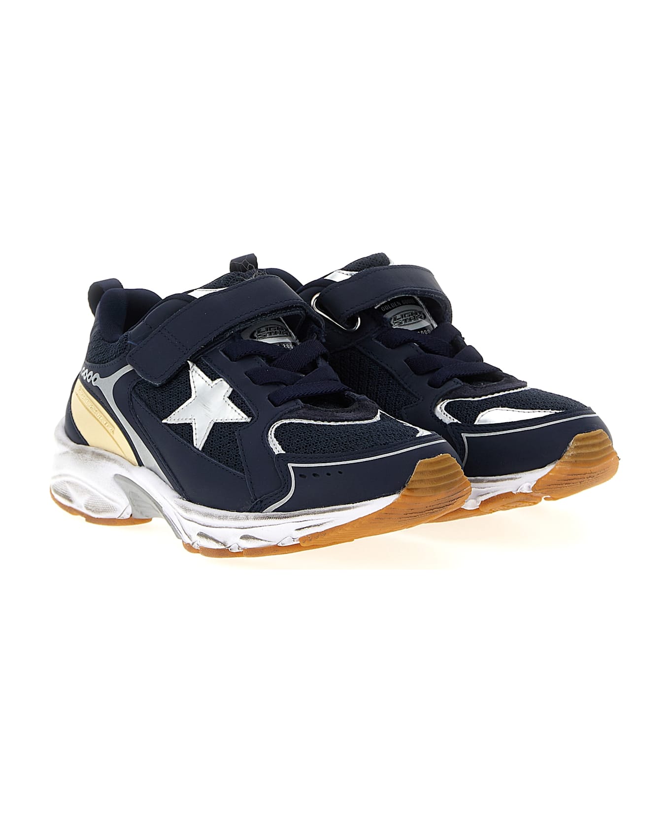 'Lightstar' used-effect leather and mesh sneakers with velcro closure, chunky rubber sole. Composition: 49% leather 42% polyester 9% polyurethane