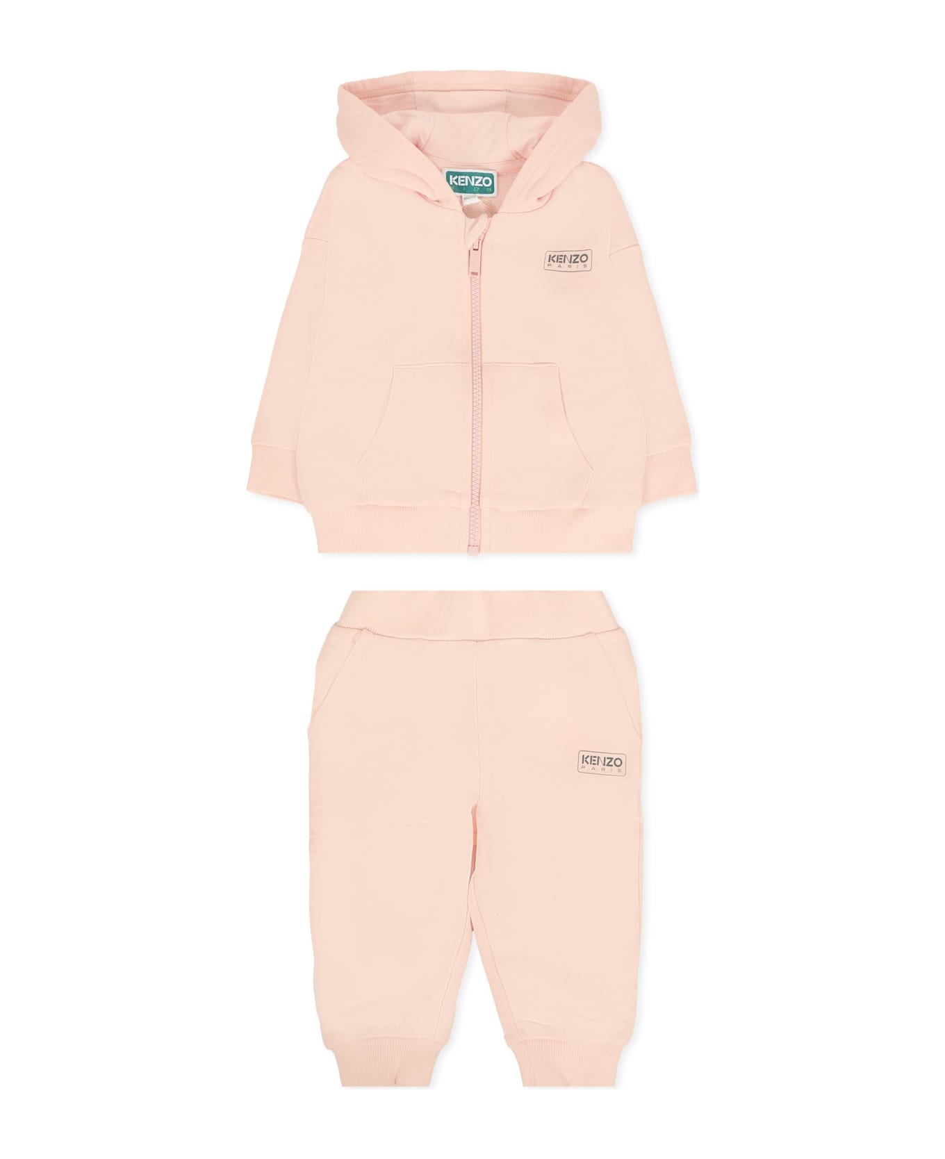 Pink gauzed cotton suit, composed of sweatshirt and trousers. Long-sleeved sweatshirt, with hood, front zip fastening, side pockets, ribbed cuffs and hem; trousers with elasticated waist, side pockets and ribbed ankles. It is embellished with logo on the front and back.