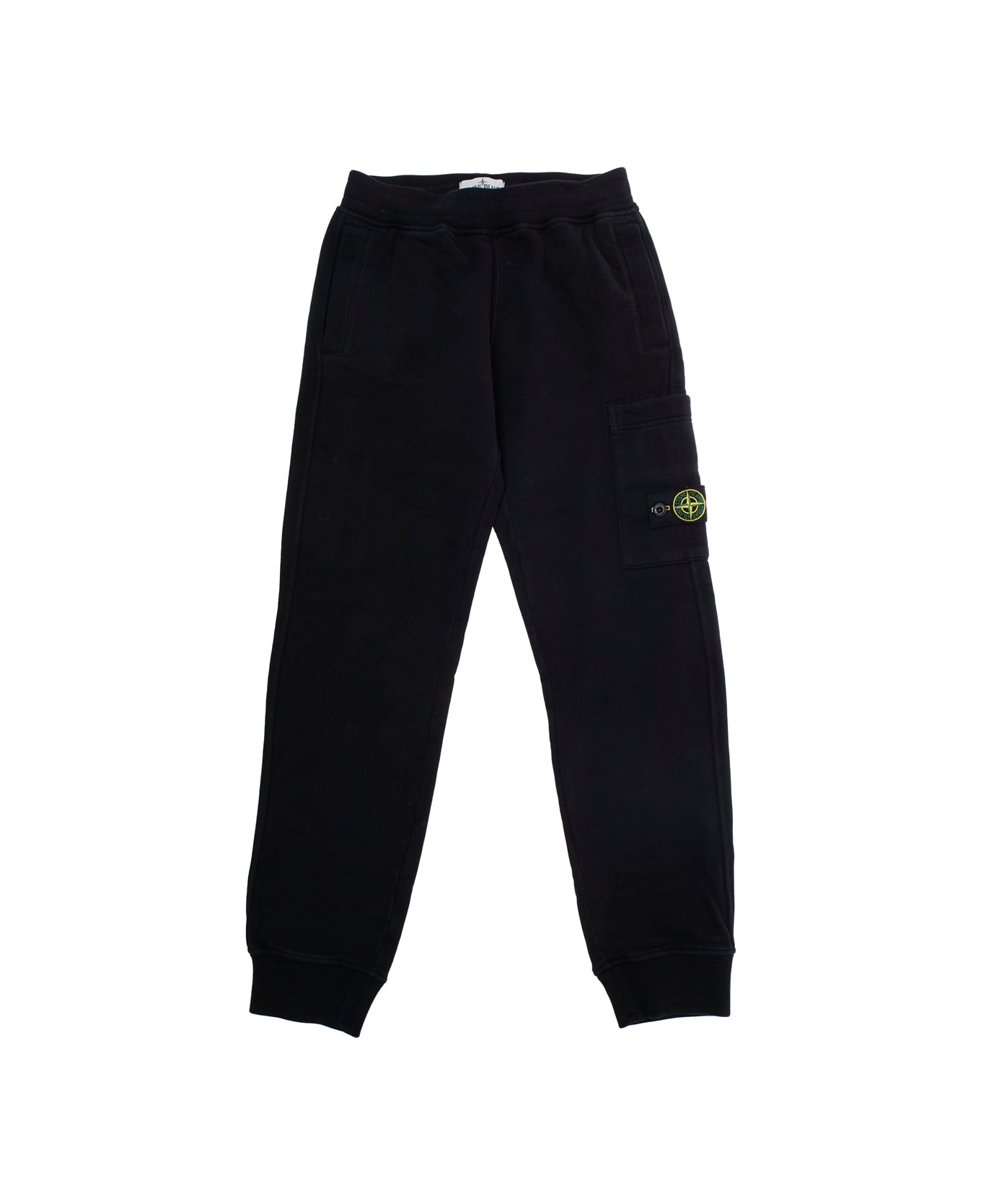 Black Pants With Elastic Waist And Logo Patch On The Side In Cotton Boy