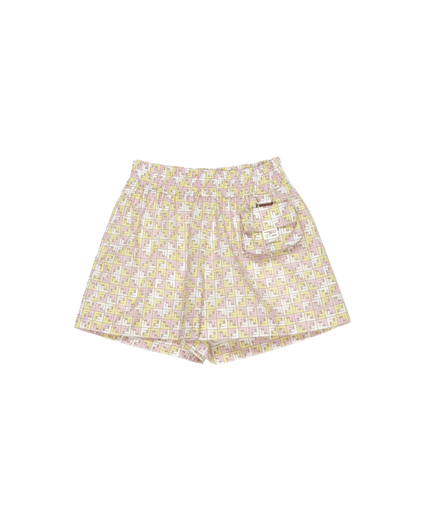 Elasticated waist shorts by Fendi Kids made of cotton with all-over pink and yellow monogram pattern. Micro Baguette applied on the waist. Composition: Composition:, 100% Cotton.