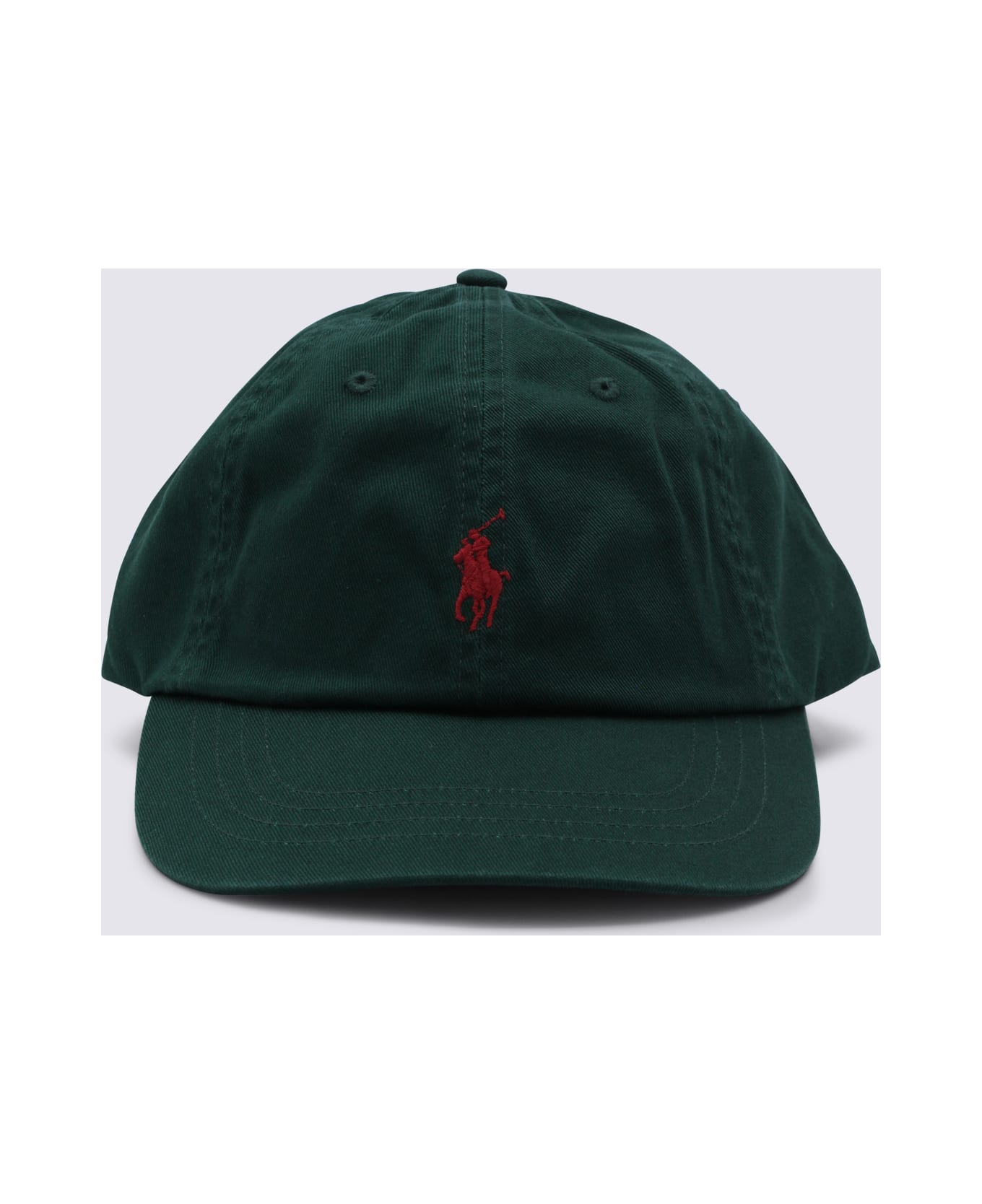 Collage green cotton hat from Polo Ralph Lauren featuring round trim, embroidered logo and adjustable size.