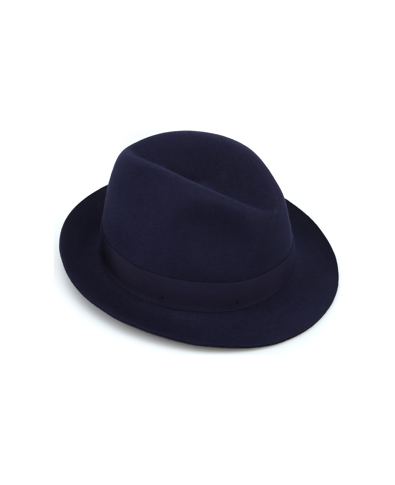 Borsalino Blue fur felt hat, 3 cm grosgrain ribbon, golden logo detail, 4. 5 cm wide brim. Composition: 100% Fur