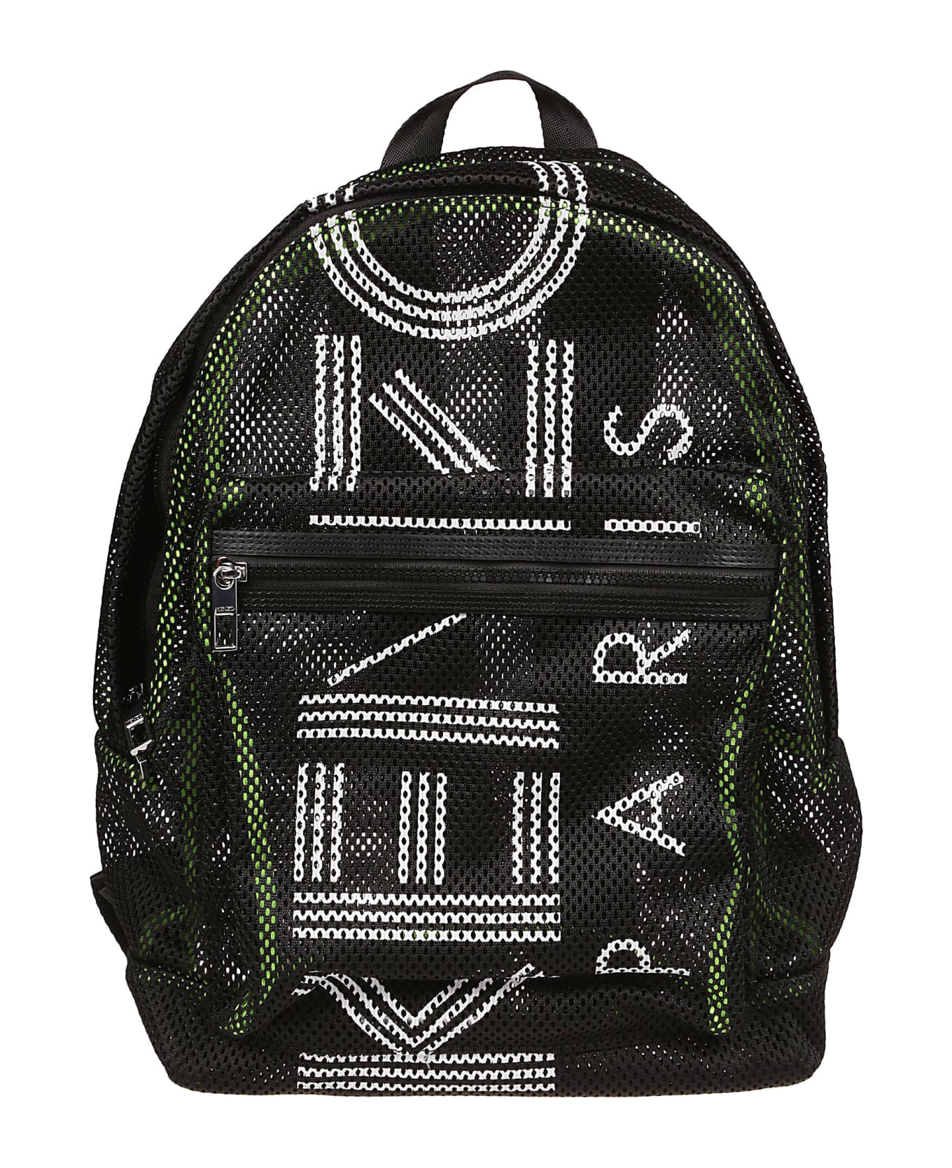 Mesh Paneled Backpack from Kenzo: Black Mesh Paneled Backpack with top handle, top zip closure, front zip pocket, internal compartment and adjustable rear shoulder strap.