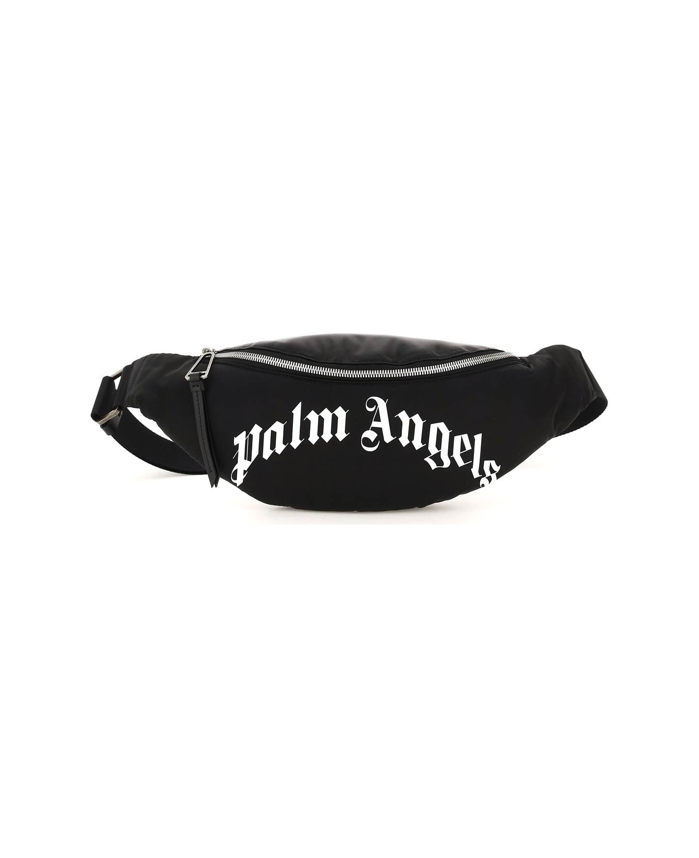 Palm Angels fanny pack in technical fabric with contrasting curved logo print on front, zip closure and adjustable grosgrain belt. Cotton lining, antique silver-finished metalware. Composition: 76% poliammide, 24% poliuretano