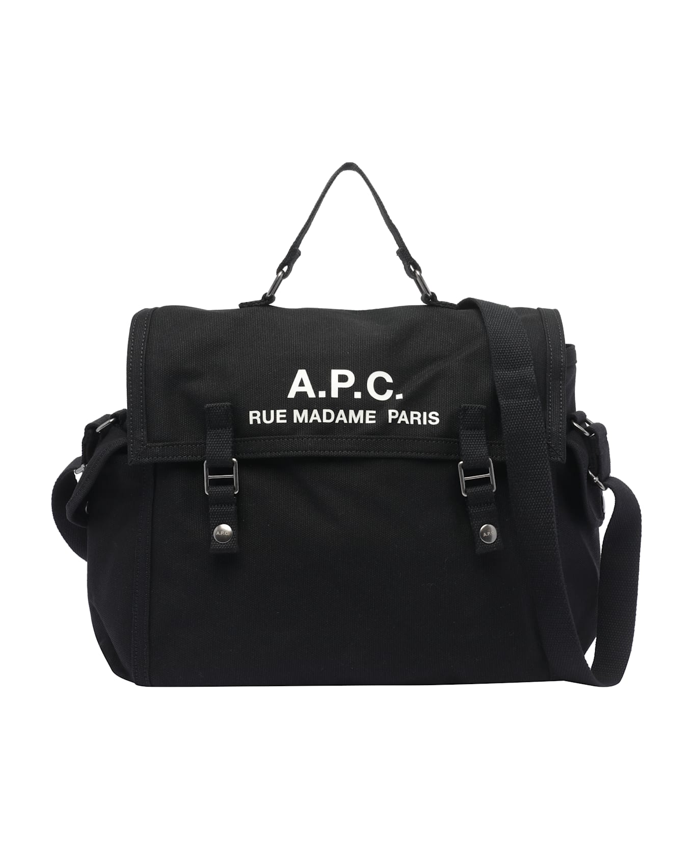 A. P. C. black Besace Recuperation handbag, clip magnetic closure, lateral clip pockets, 2 inner sections, adaptable strap, frontal logo Composition: 100% Cotton