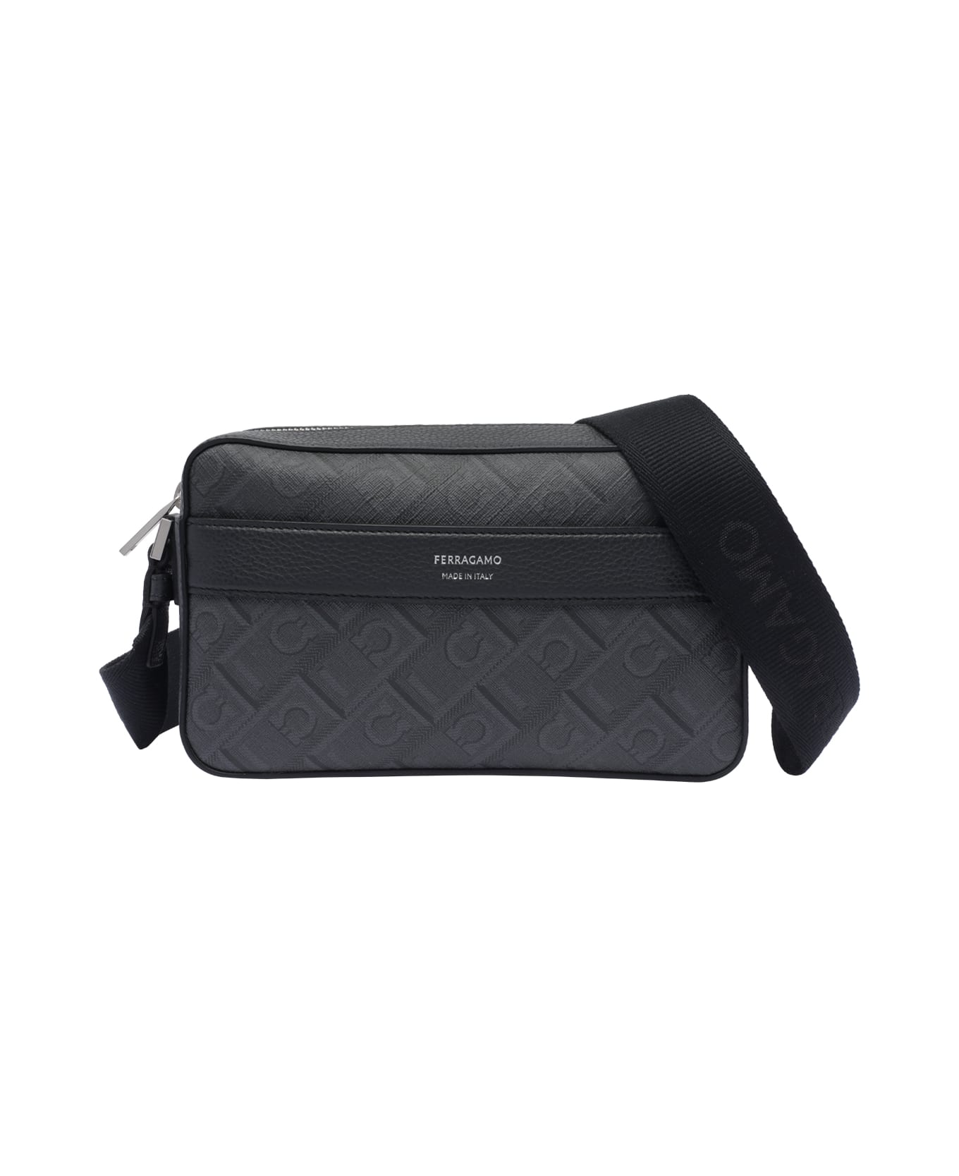 Ferragamo black Ferragamo Monogram crossbody bag, inner zipped pocket, external open pocket, adaptable strap, monogram logo Composition: 100% Coated Fabric, Leather Trim