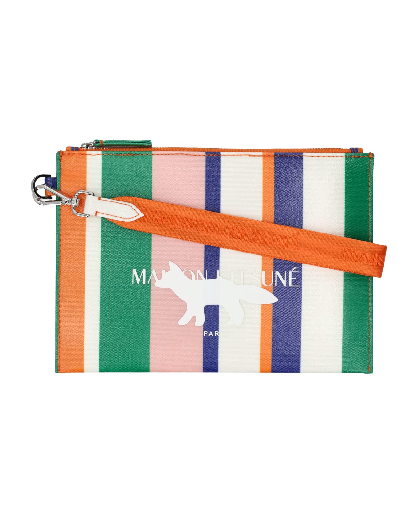 Coated Canvas Stripes Pouch By Maison Kitsuné. Featuring: Zip Fastening Profile Fox On maison Kitsuné Print At The Front Removable maison Kitsuné Strap Silver-tone Metal Finish Width: 25 Cm Height: 17,5 Cm
