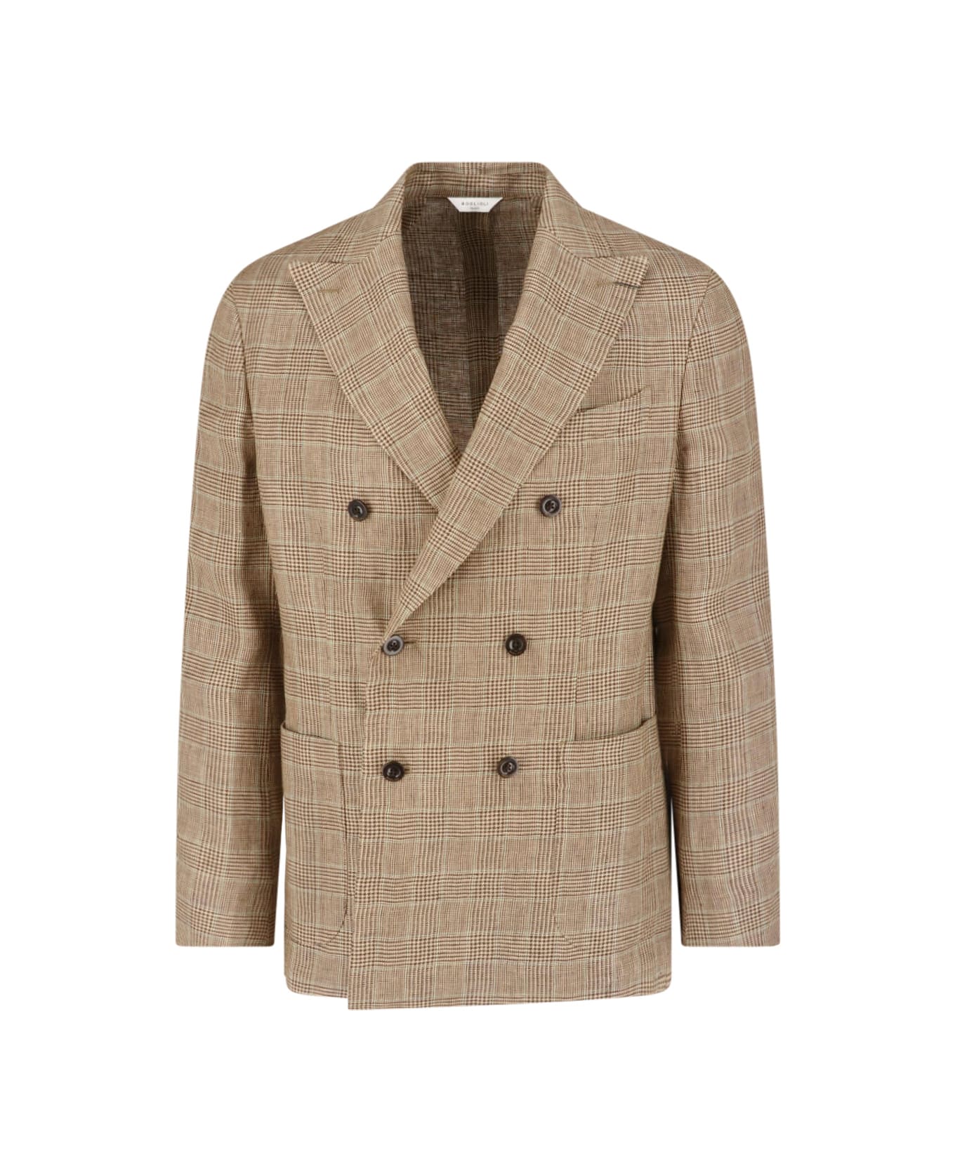 - Double-breasted linen blazer multicolor Boglioli - "Prince of Wales" all-over pattern - notch lapels - long sleeves - double-breasted button closure - two side pockets - one welt pocket front