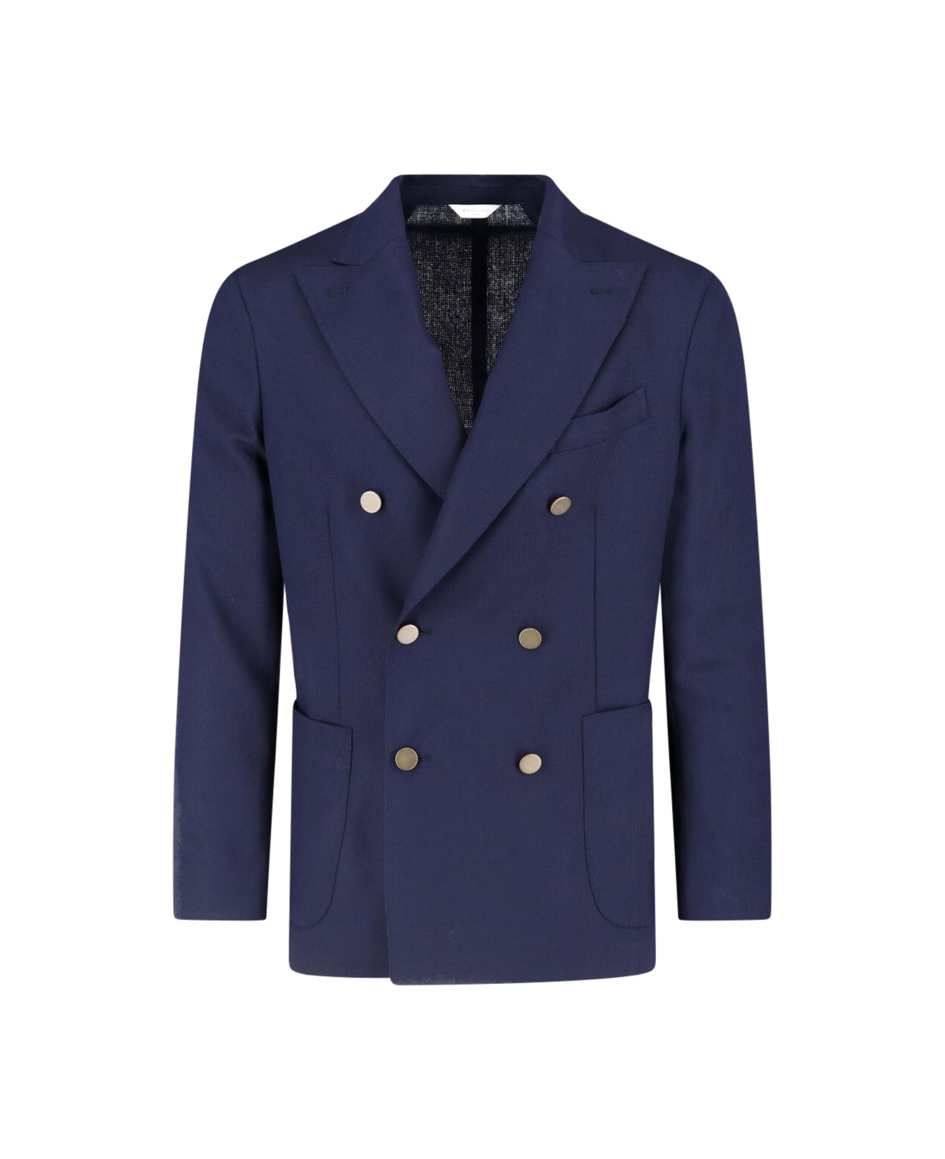 - Double-breasted virgin wool blazer in navy blue Boglioli - notch lapels - long sleeves - double-breasted button closure - two side pockets - one welt pocket at the front