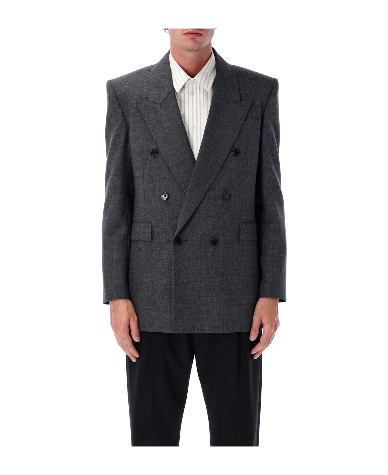 An Elevated Expression Of Tailoring, This Saint Laurent Jacket In Certified Wool Channels Timeless Sophistication With Modern Proportions. Designed With A Double-breasted Six-button Closure, Peaked Lapels, And Structured Shoulders, It Features An Oversized, Elongated Silhouette Lined In Silk For A Refined Finish. A Piece That Embodies The Maison s Signature Parisian Elegance. Made From Certified Wool With Silk Lining