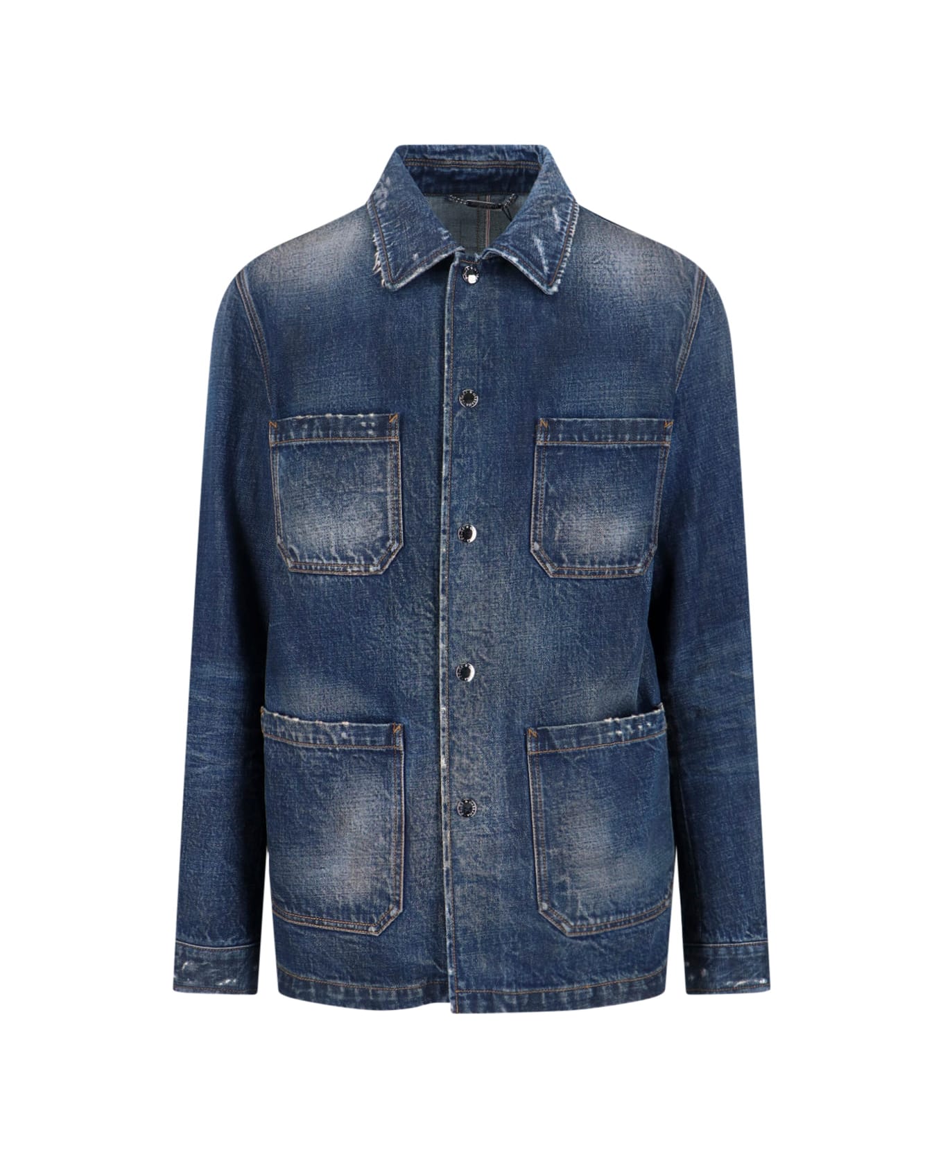 Dolce & Gabbana blue cotton denim jacket with distressed wash, collar, front button closure, long sleeves, four front pockets, destroyed details, straight hem. Composition: 100% Cotton