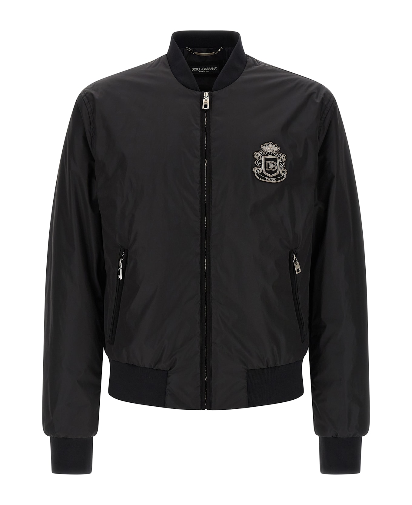 Lightly padded bomber jacket in technical fabric with ribbed stretch knit details, 'DG' patch and front zip closure, pockets, long cuffed sleeves, and headband. Composition: 100% polyamide