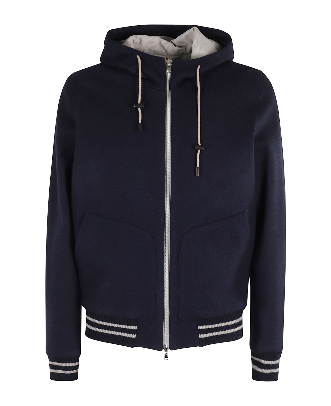 Coat -L. B. M. -Blue color -Long sleeve -Custom drawstring hood -Center zipper closure -Side pockets