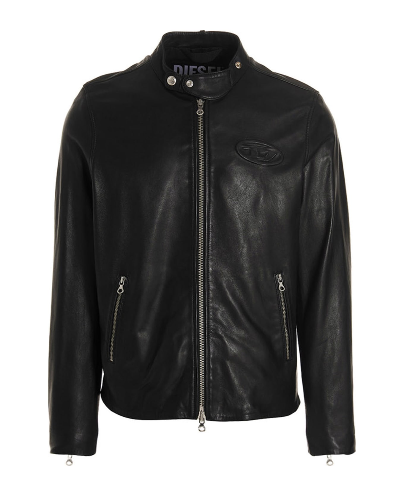 L-Metal' leather jacket with zip closure, front embossed logo, pockets, long sleeves and a zip at the bottom. Composition: 100% sheepskin Composition: 100% Sheepskin Leather