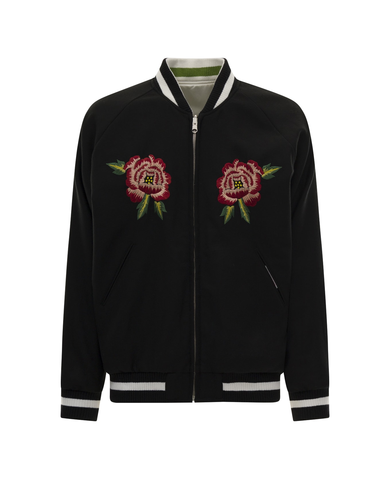 Bomber Reversible with one side in black and the other in lime green Long sleeves Ribbed and striped neck, cuffs and hem Two front welt pockets Front two roses embroidery Back France embroidery Multicolor Wool Regular fit