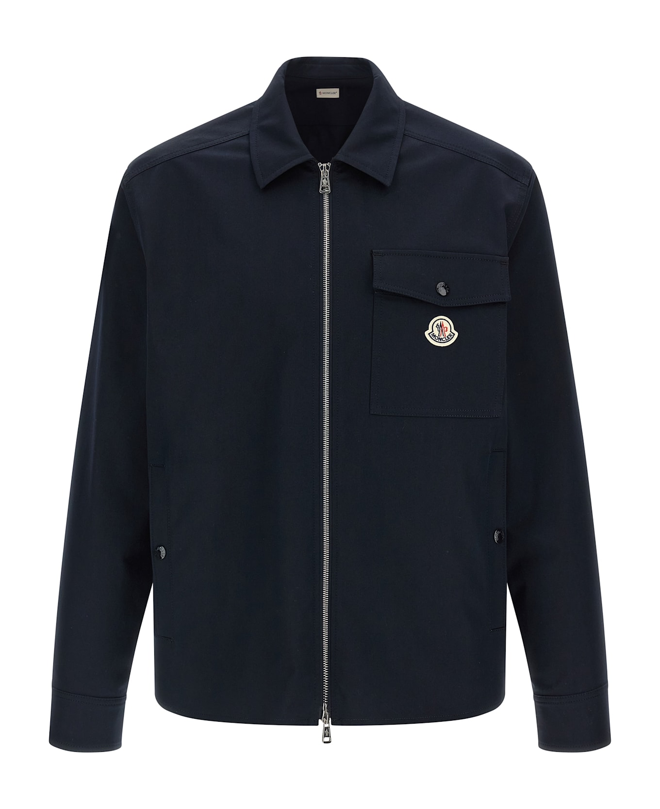 Cotton blend gabardine jacket, unlined, shirt collar, zip closure and felt logo patch on the front, pockets, long cuffed sleeves. Composition: 98% cotton, 2% elastane