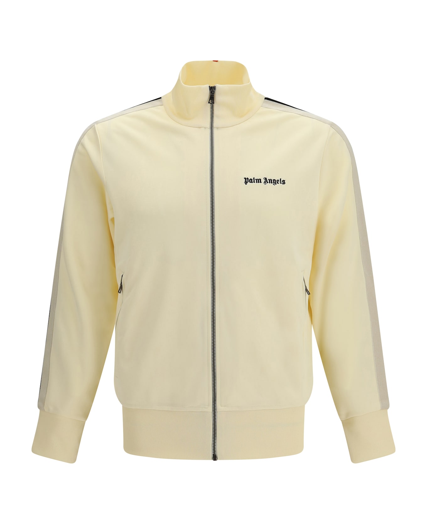 The classic logo track jacket by palm angels stands out for a sporty silhouette that interprets athleisure style with a contemporary attitude. the jacket model by palm angels features a stand collar and full front zip closure that define the structure of the garment. contrasting stripes along the sleeves and the embroidered classic logo on the chest introduce iconic and recognizable details. side zip pockets and ribbed neck, hem and cuffs complete the classic logo track jacket by palm angels with a dynamic and functional silhouette.