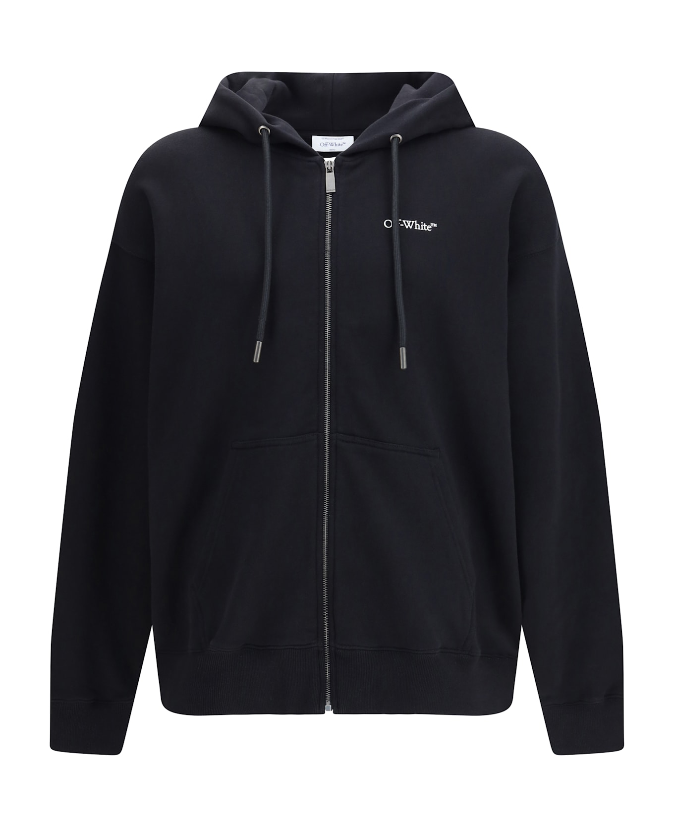 The half arrow skate zip-up hoodie by off-white is an iconic streetwear piece with a contemporary design. featuring a zip closure and an adjustable hood with drawstrings, it showcases the logo on the left front and the famous off-white print covering the entire back. finished with practical welt pockets and an oversized fit, it s perfect for a trendy, urban look.