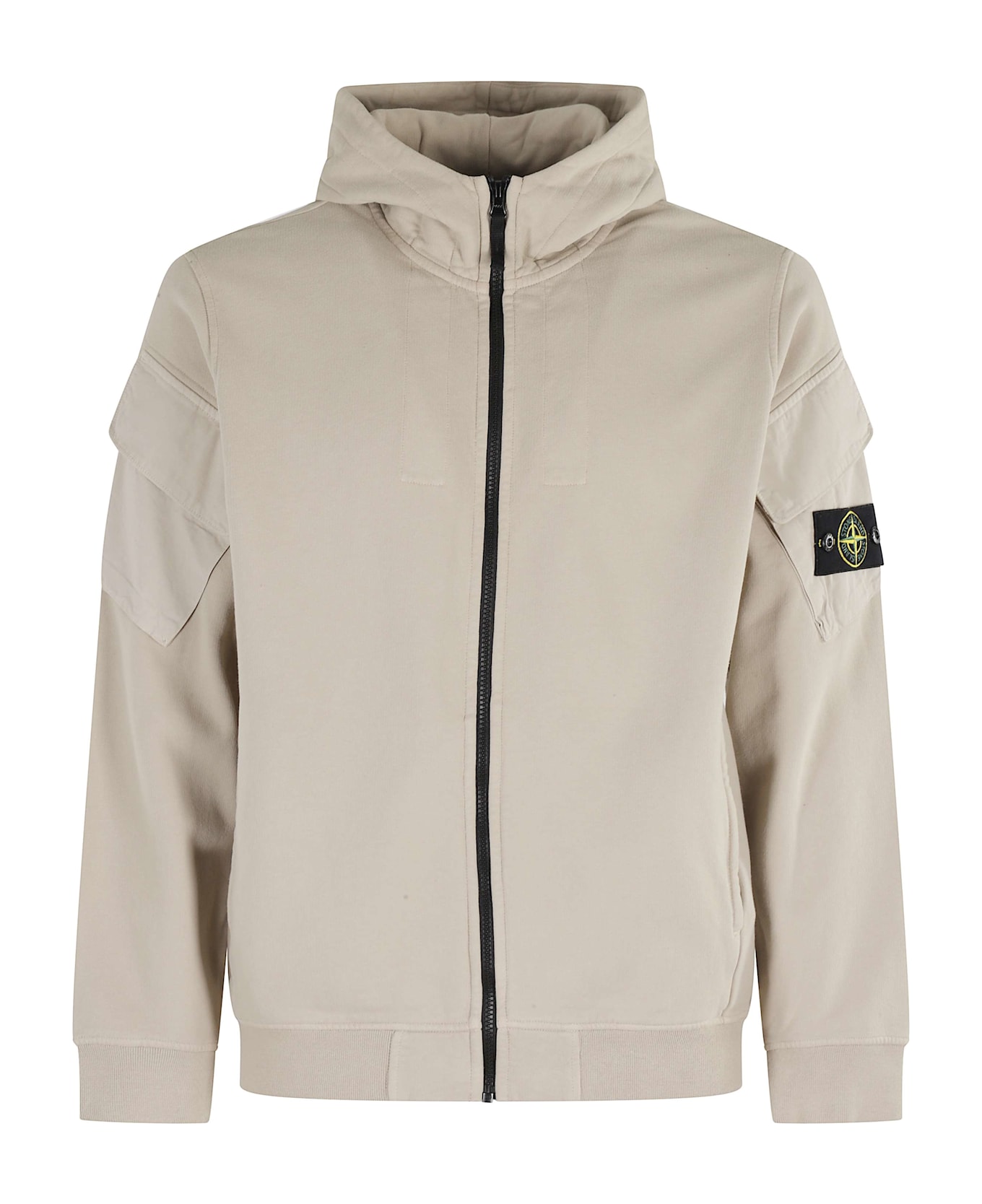 Sweatshirt -Stone Island -Desert color -Long sleeve with side logo patch -Center zipper closure -Cap -Side pockets