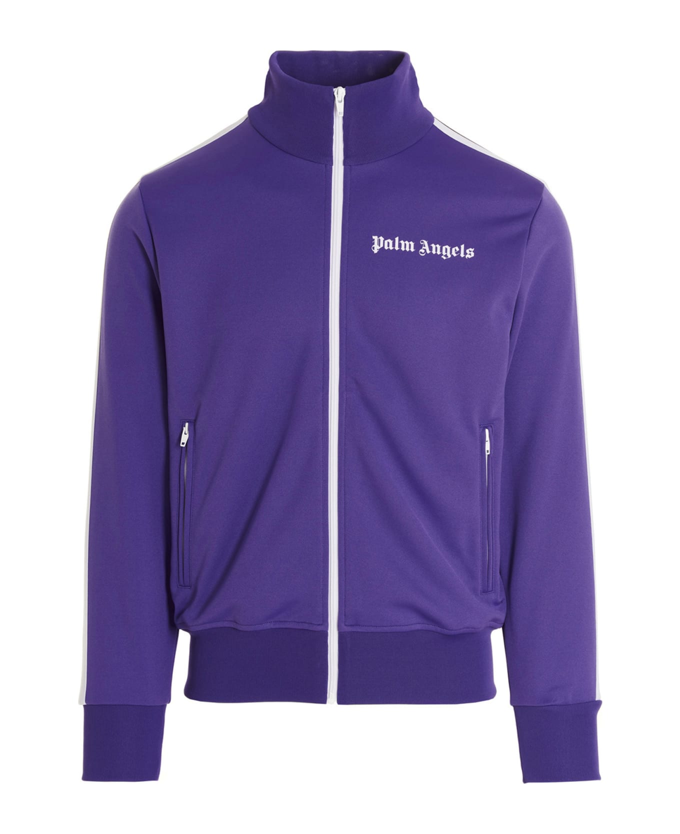 'Track Logo' sweatshirt with front logo print, zip closure, contrasting bands, pockets, long sleeves with cuff, high collar. Composition: 100% polyester