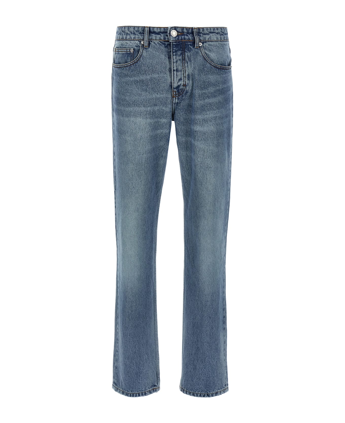 Delavé cotton denim jeans, button closure, five pockets, straight leg, back logo tag. Composition: 100% cotton