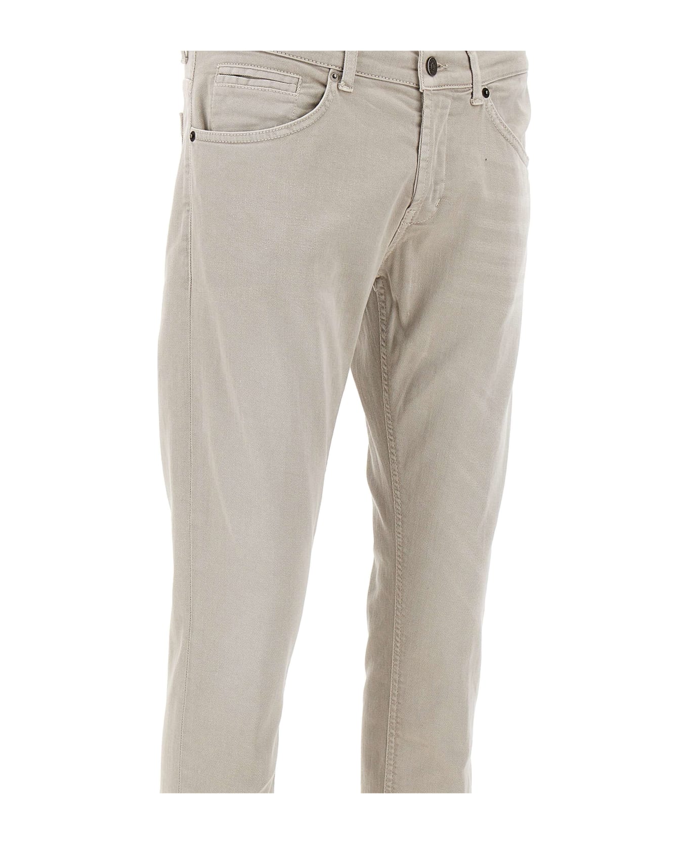 Dondup 'George' men's jeans, mud grey, five-pocket model, fastening with logoed buttons, skinny fit, iconic mini logo patch on back pocket, turn-up at hem , ideal for a comfortable and trendy look. Made in Italy.