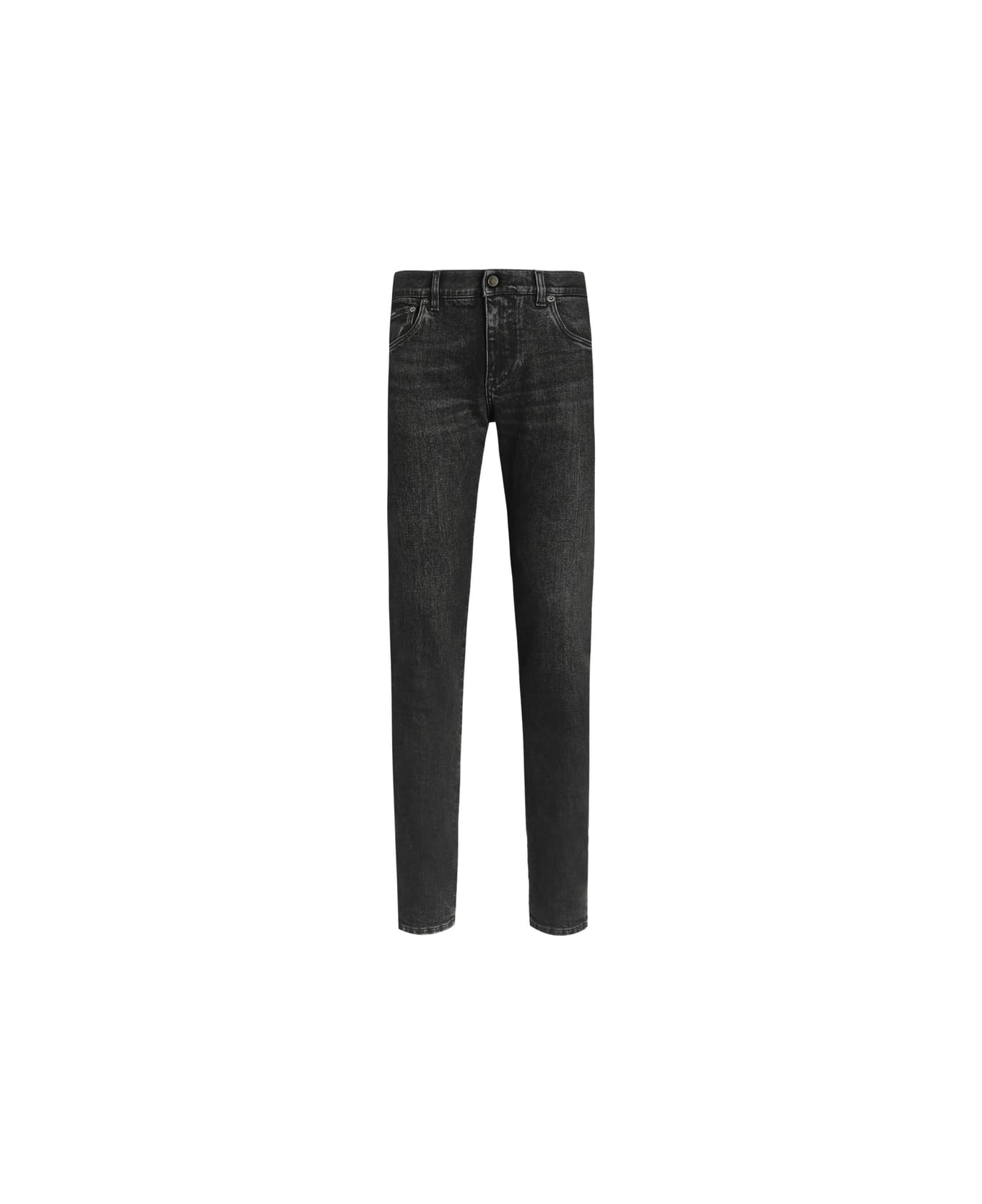 black belt loops classic five pockets silver-tone logo plaque top button fastening