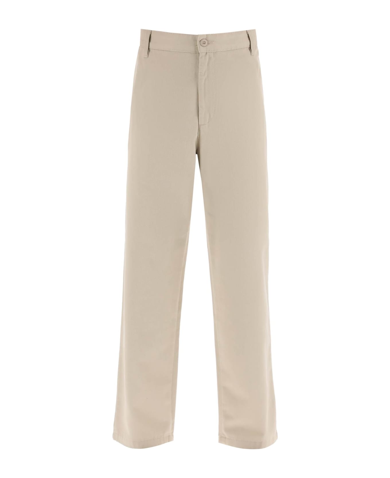 Chino pants by Carhartt-WIP crafted in cotton-blend twill with a carrot fit. Concealed zip and button closure, side inseam pockets, buttoned rear pockets, logo patch at back. The model is 187 cm tall and wears a size 30.