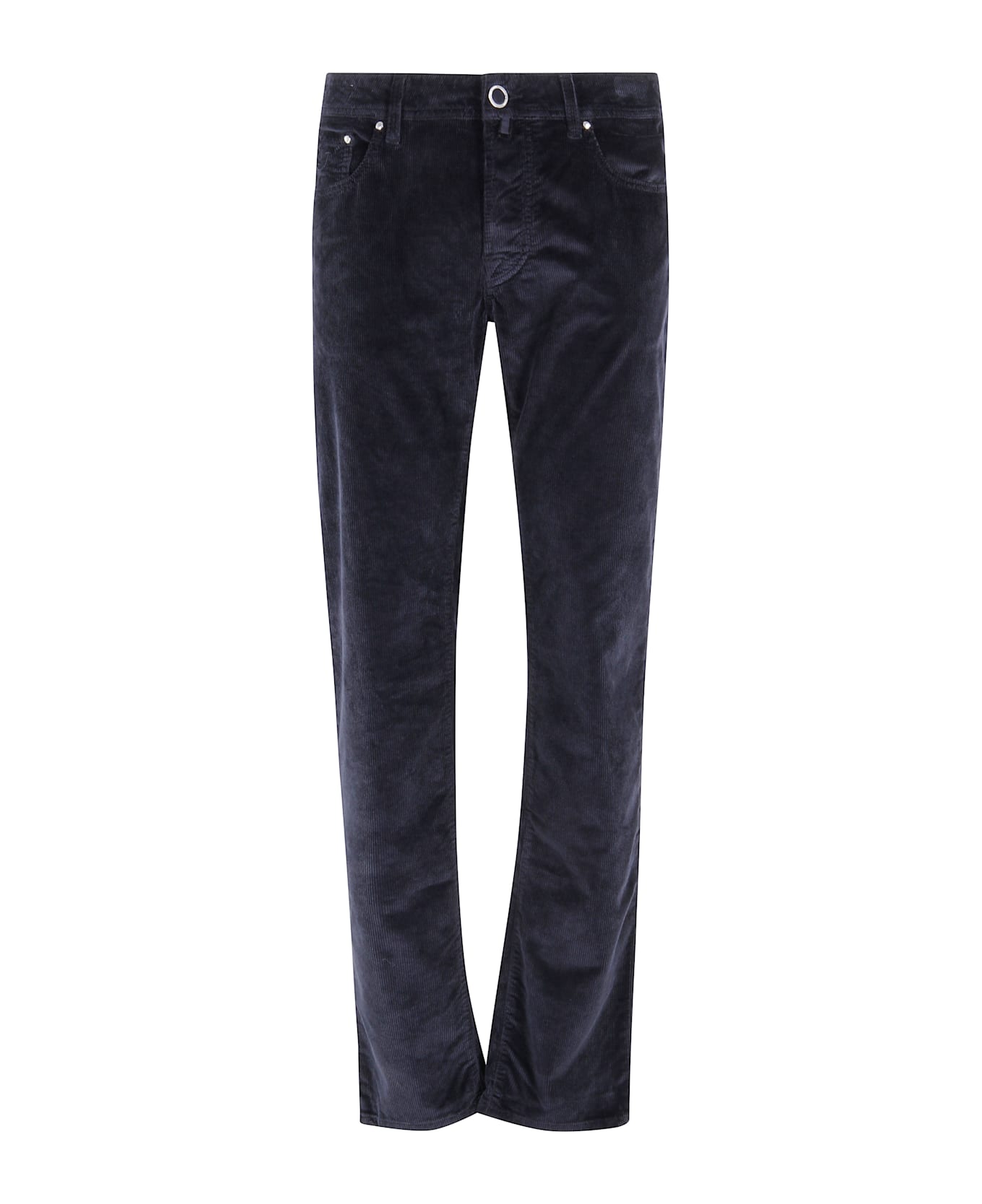Bard pants - Jacob Cohen - Navy color - Corduroy fabric - Low waist with belt loops - Slim leg - Five-pocket pattern - Front button closure