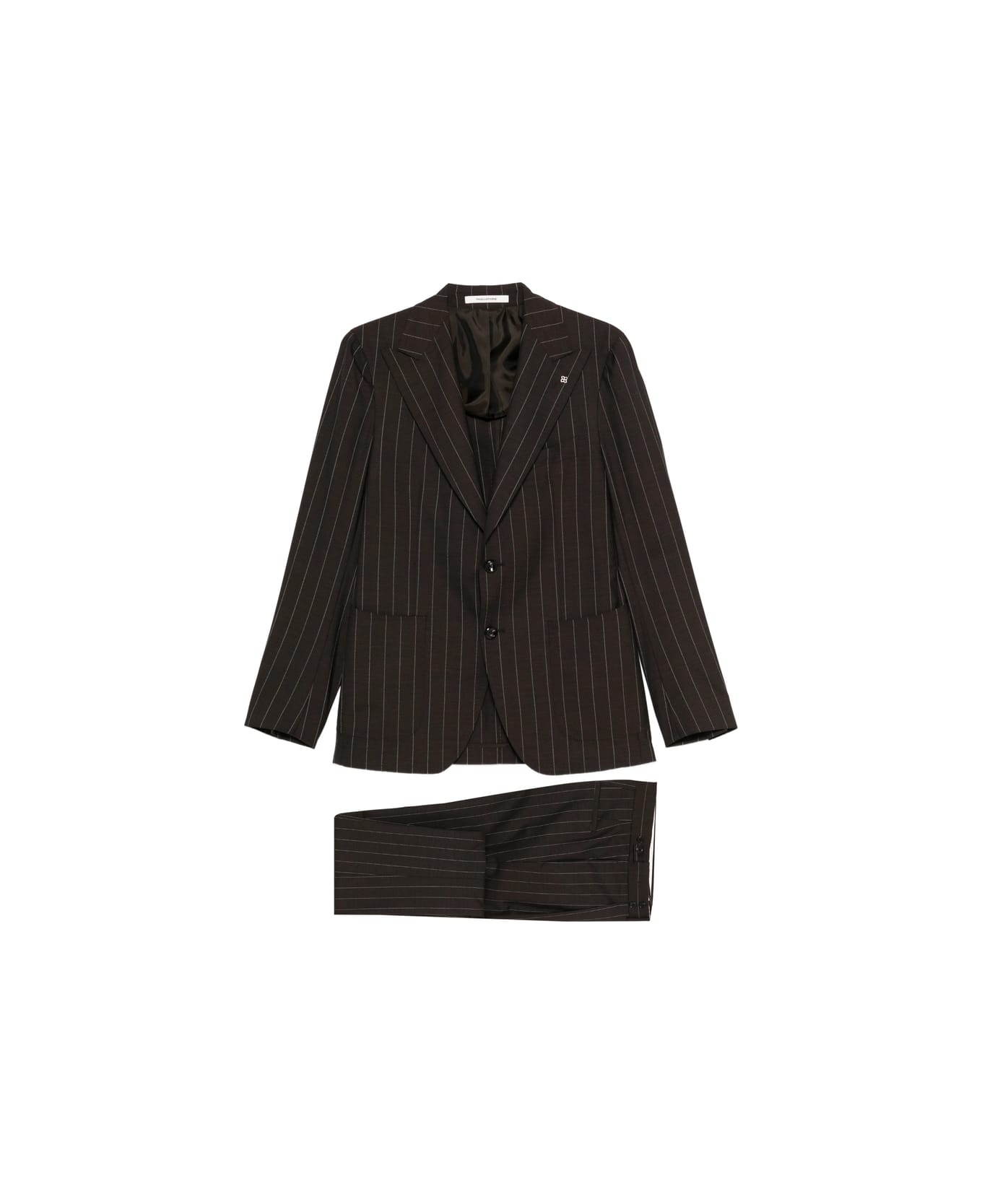 brown pinstripe pattern button fastening flap pockets two-piece set notched lapels