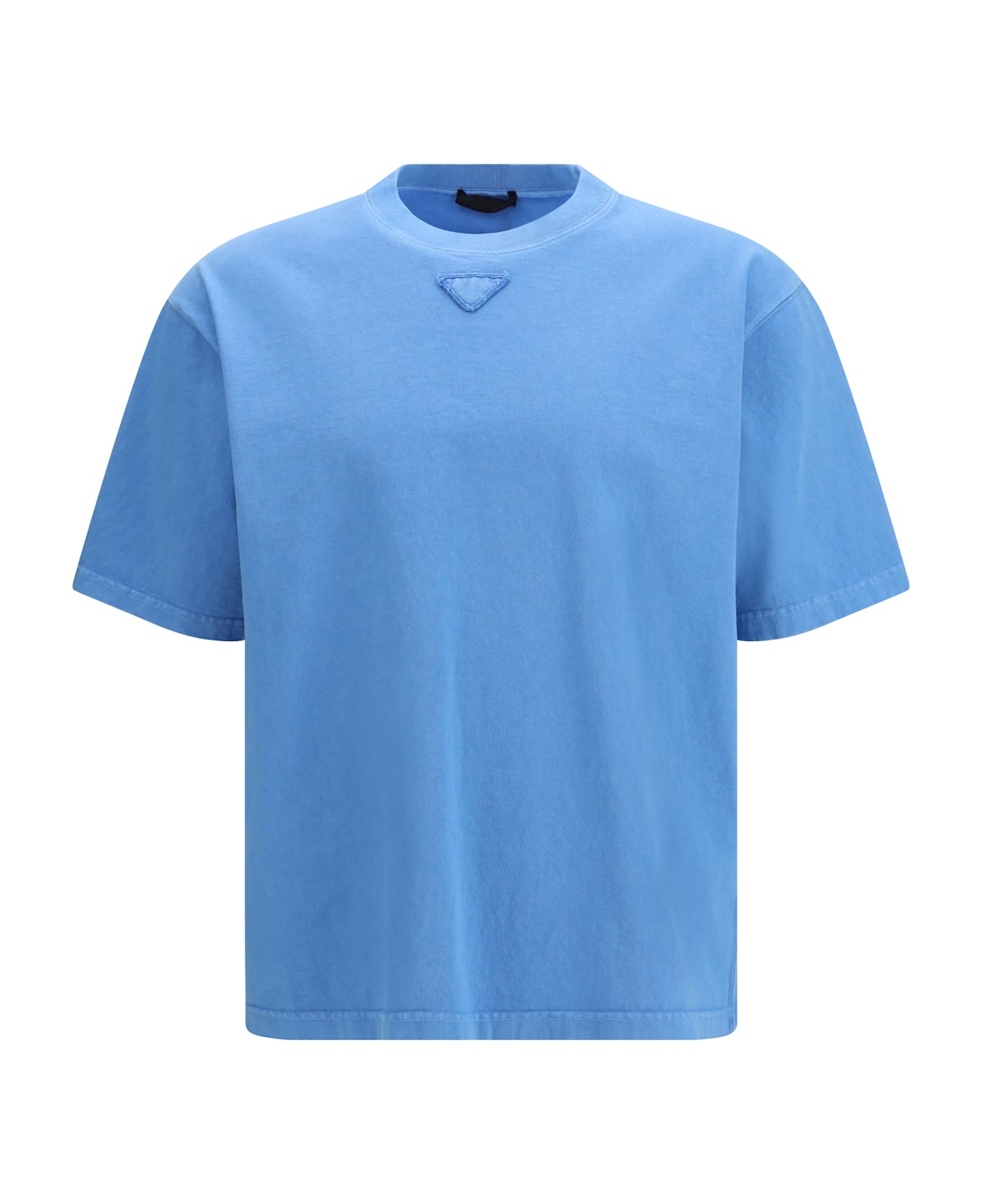 The cotton t-shirt by prada is a simple yet sophisticated piece, featuring a ribbed crew neck that provides a comfortable and versatile fit. the triangular patch on the front, bearing the brand's signature, adds a distinctive and recognizable touch. perfect for those looking for a casual-chic look, this t-shirt combines the comfort of cotton with the quality and elegance typical of prada. a must-have for a modern and refined wardrobe.